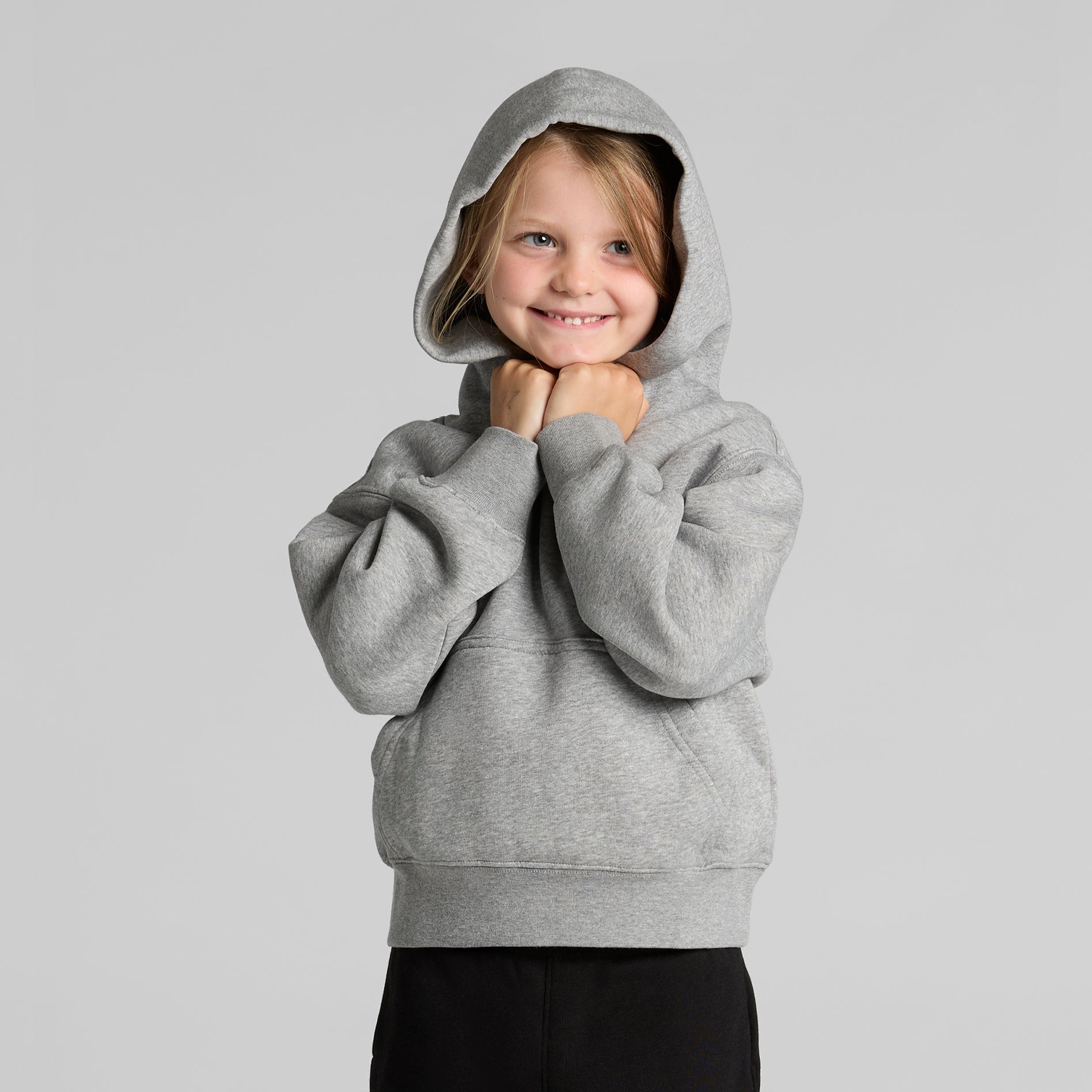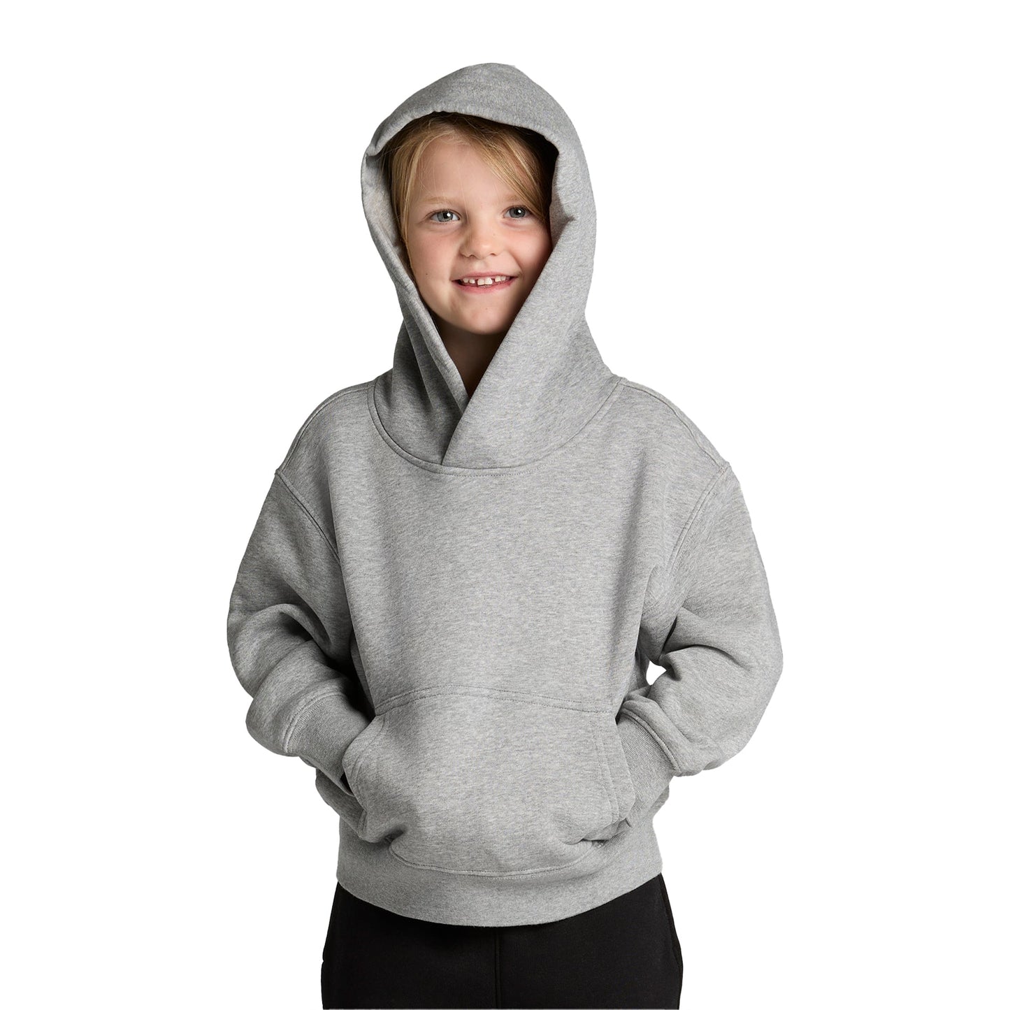 Pullover hood, rib neck cuffs and hem, drop shoulders, boxy fit, self-lined hood