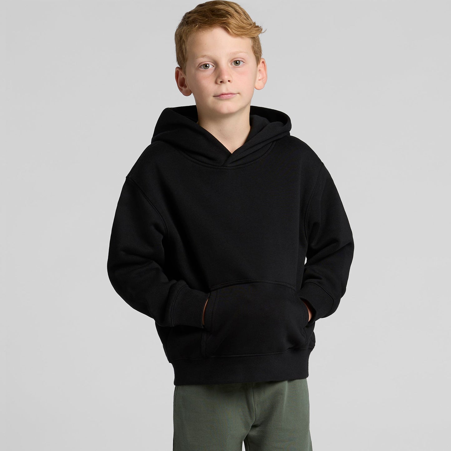Pullover hood, rib neck cuffs and hem, drop shoulders, boxy fit, self-lined hood