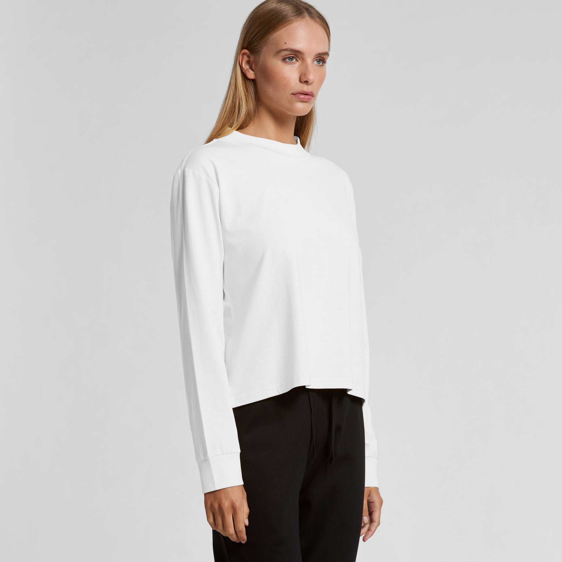 Shorter length body, long sleeves, rib cuffs, high rib neck, double needle hems, preshrunk to minimise shrinkage