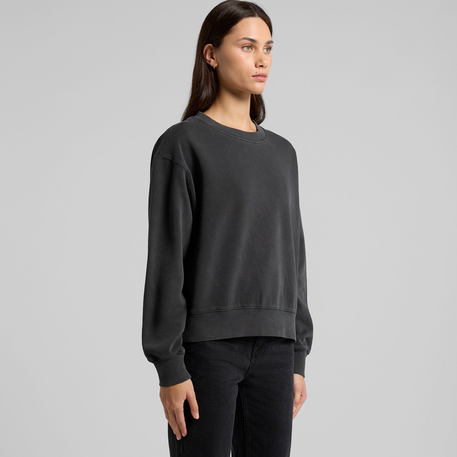 Pre-shrunk to minimise shrinkage, pullover crew, drop shoulder, crew neck, garment dyed, sleeve cuff ribbing