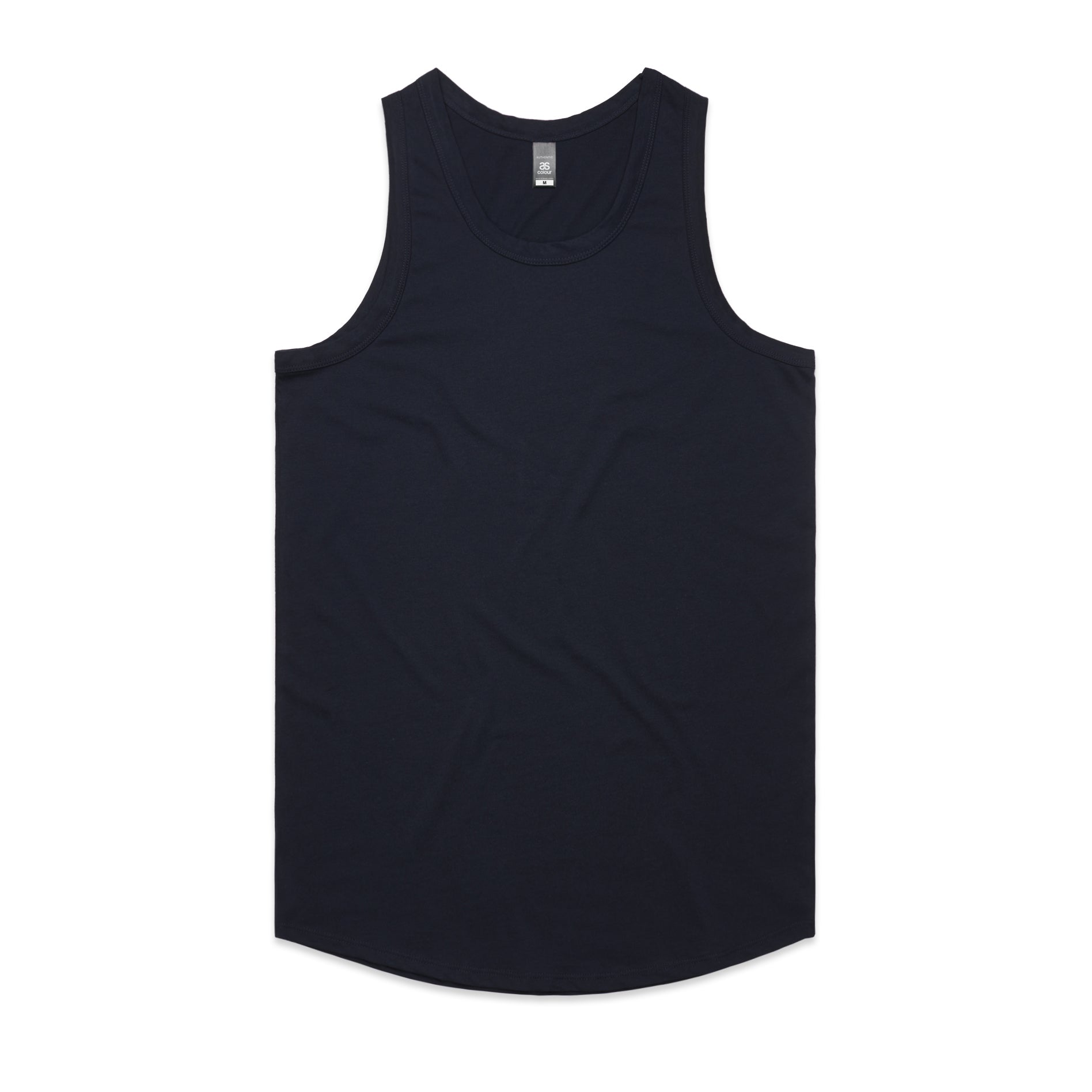 Self-fabric bindings at neck and armhole, slightly narrow at upper chest, curved hem, double needle bottom hem, preshrunk to minimise shrinkage