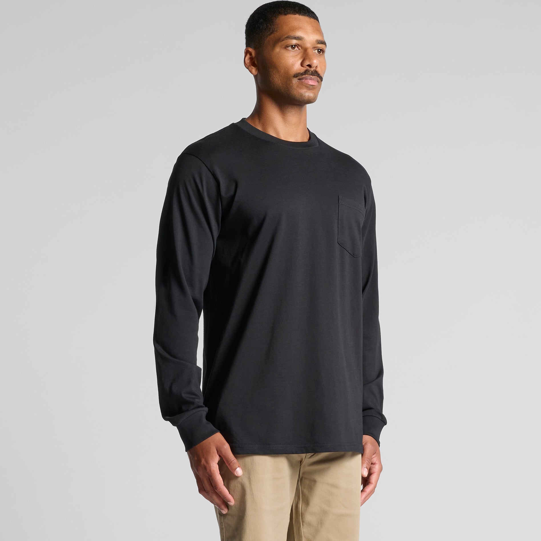 Crew neck, tonal colour pocket, neck ribbing, side seamed, cuffed sleeves, shoulder to shoulder tape, double needle hems, preshrunk to minimise shrinkage