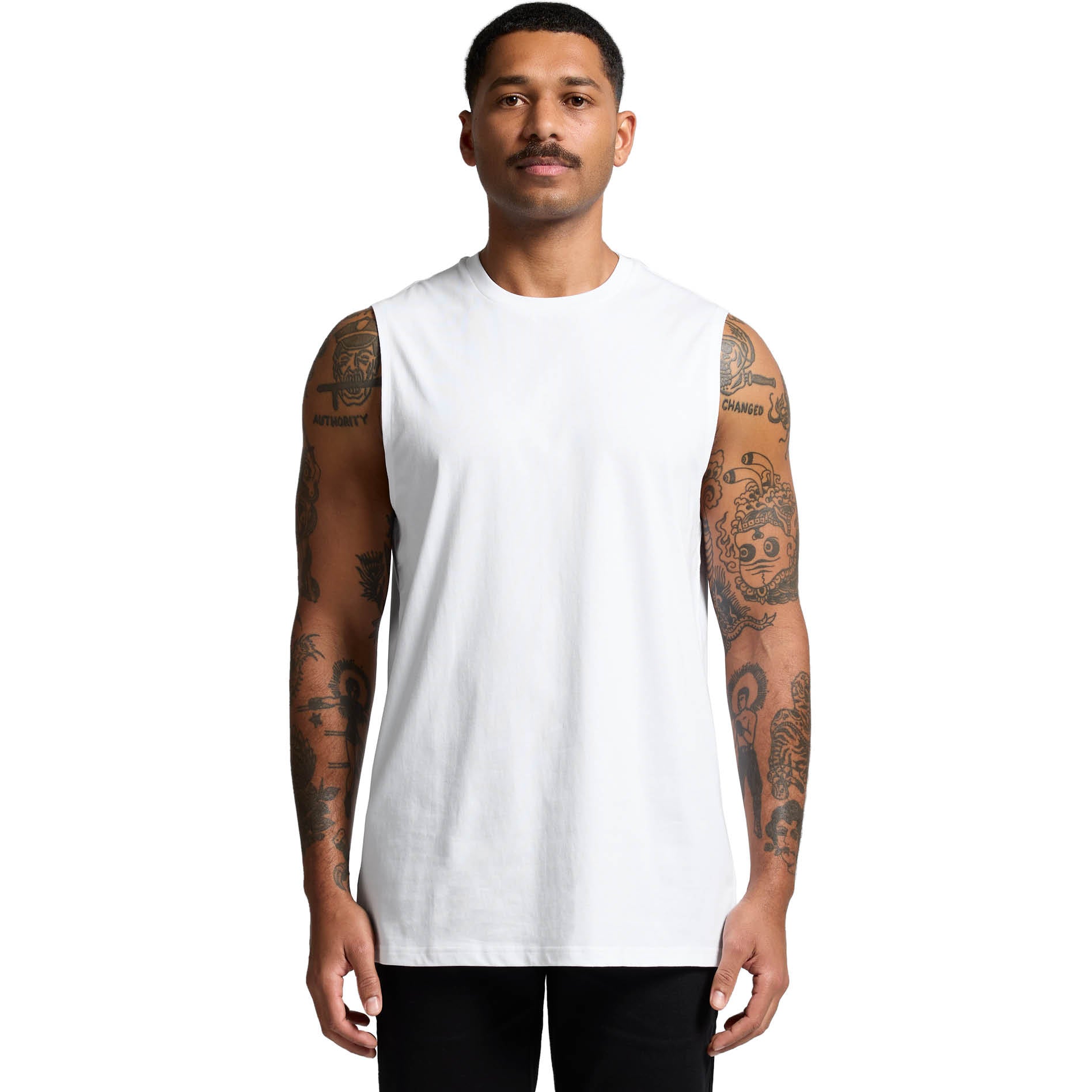 Sleeveless tank, hemmed armhole edges, neck ribbing, side seamed, shoulder to shoulder tape, double needle hems, preshrunk to minimise shrinkage