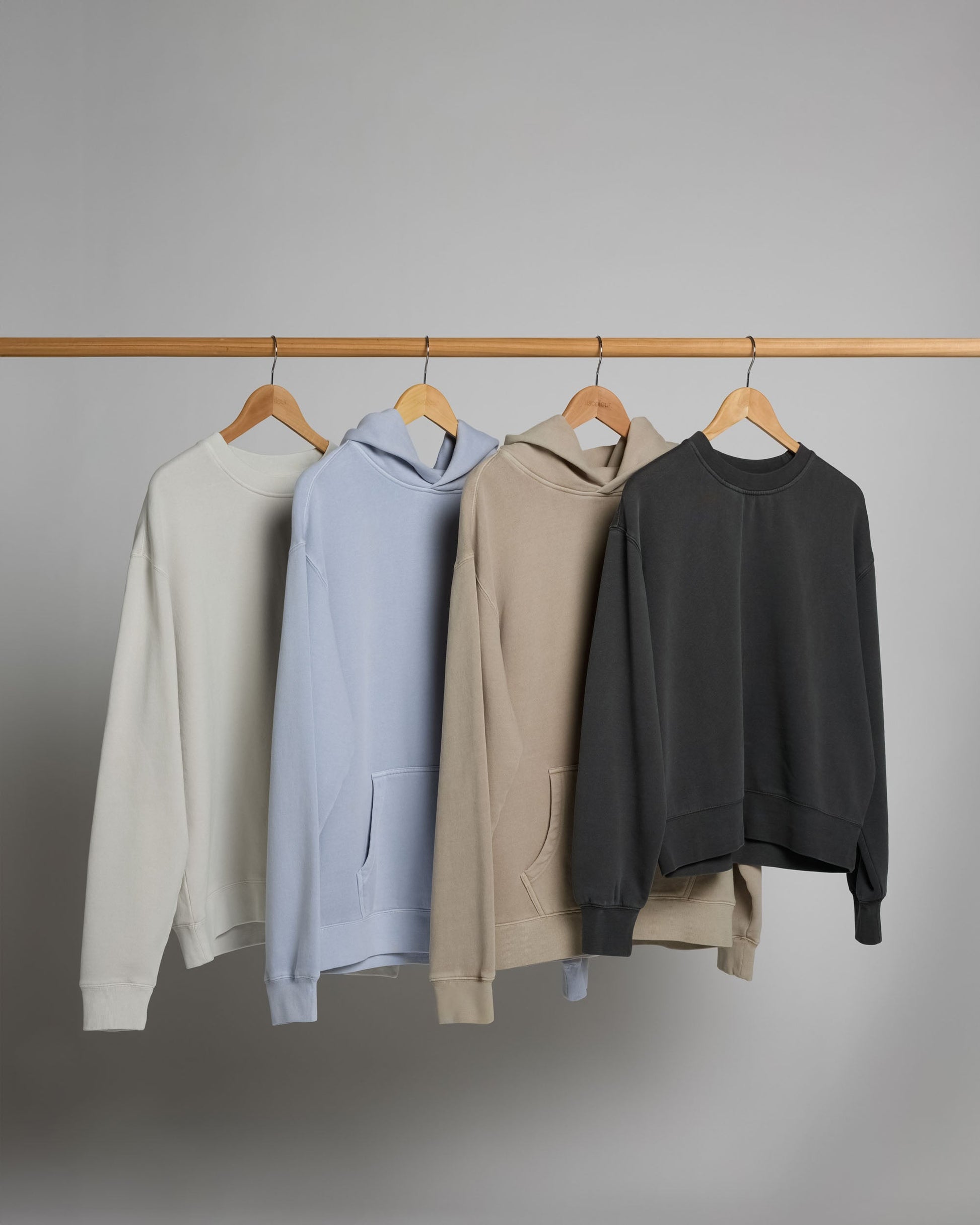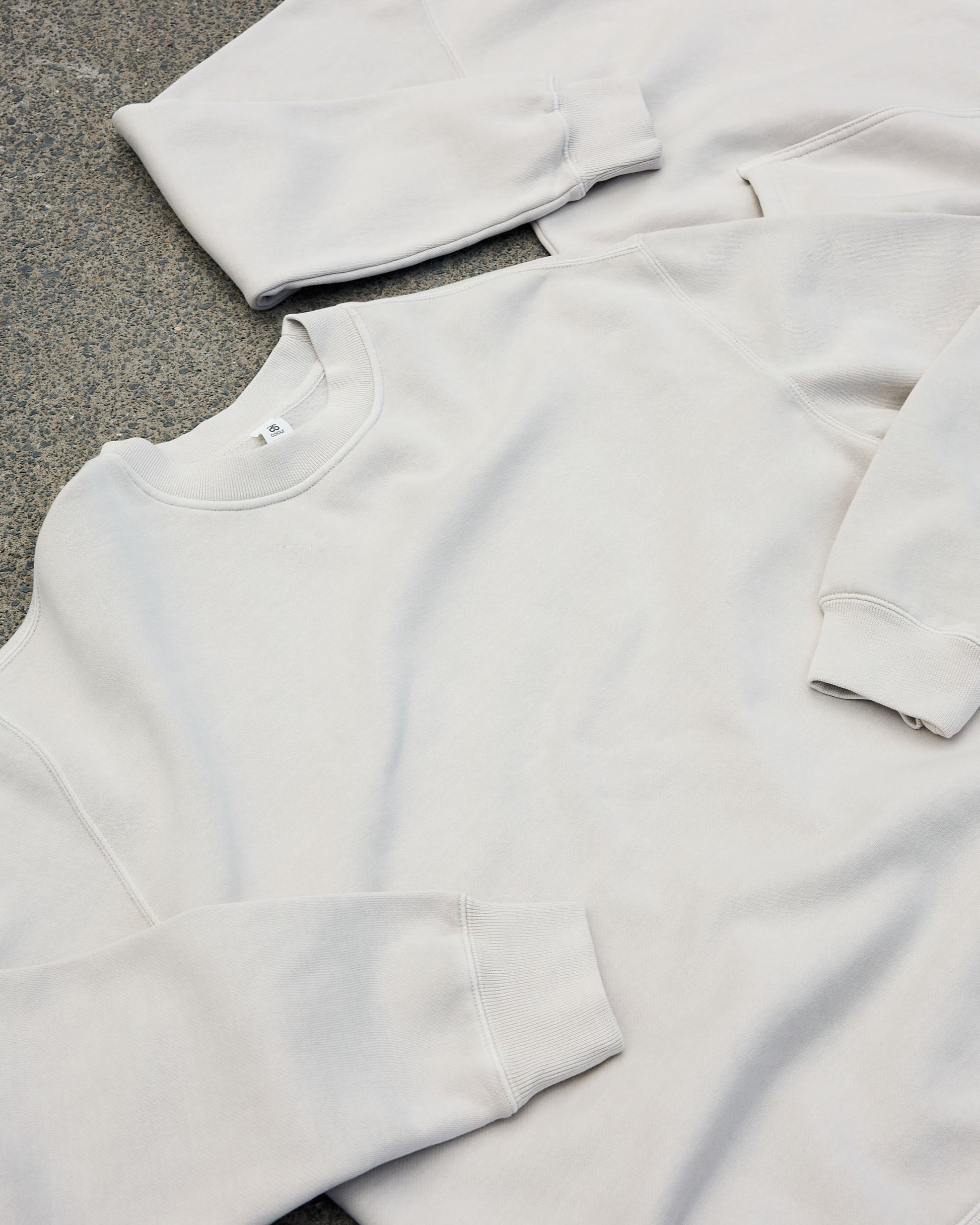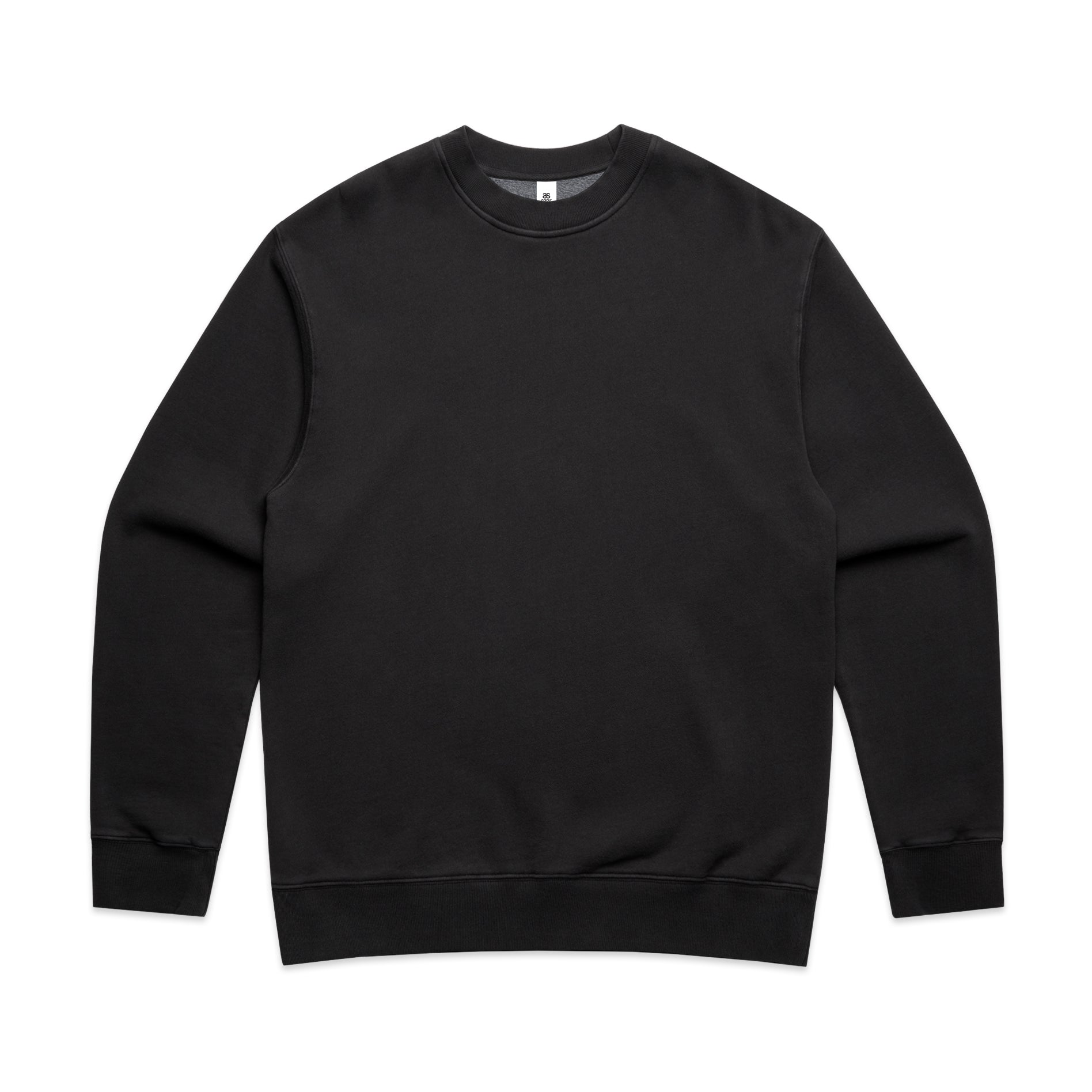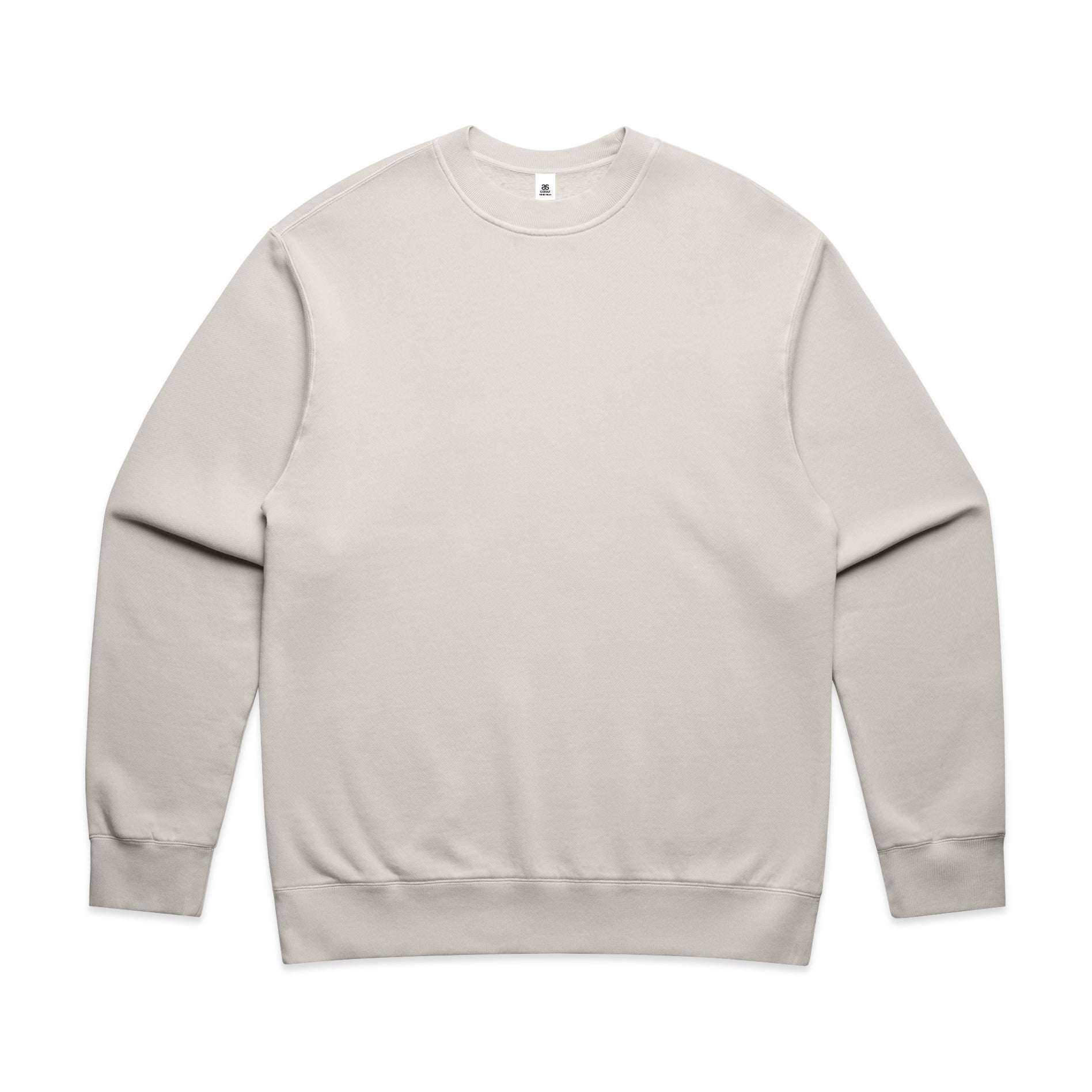 Pre-shrunk to minimise shrinkage, pullover crew, drop shoulder, crew neck, garment dyed, sleeve cuff ribbing