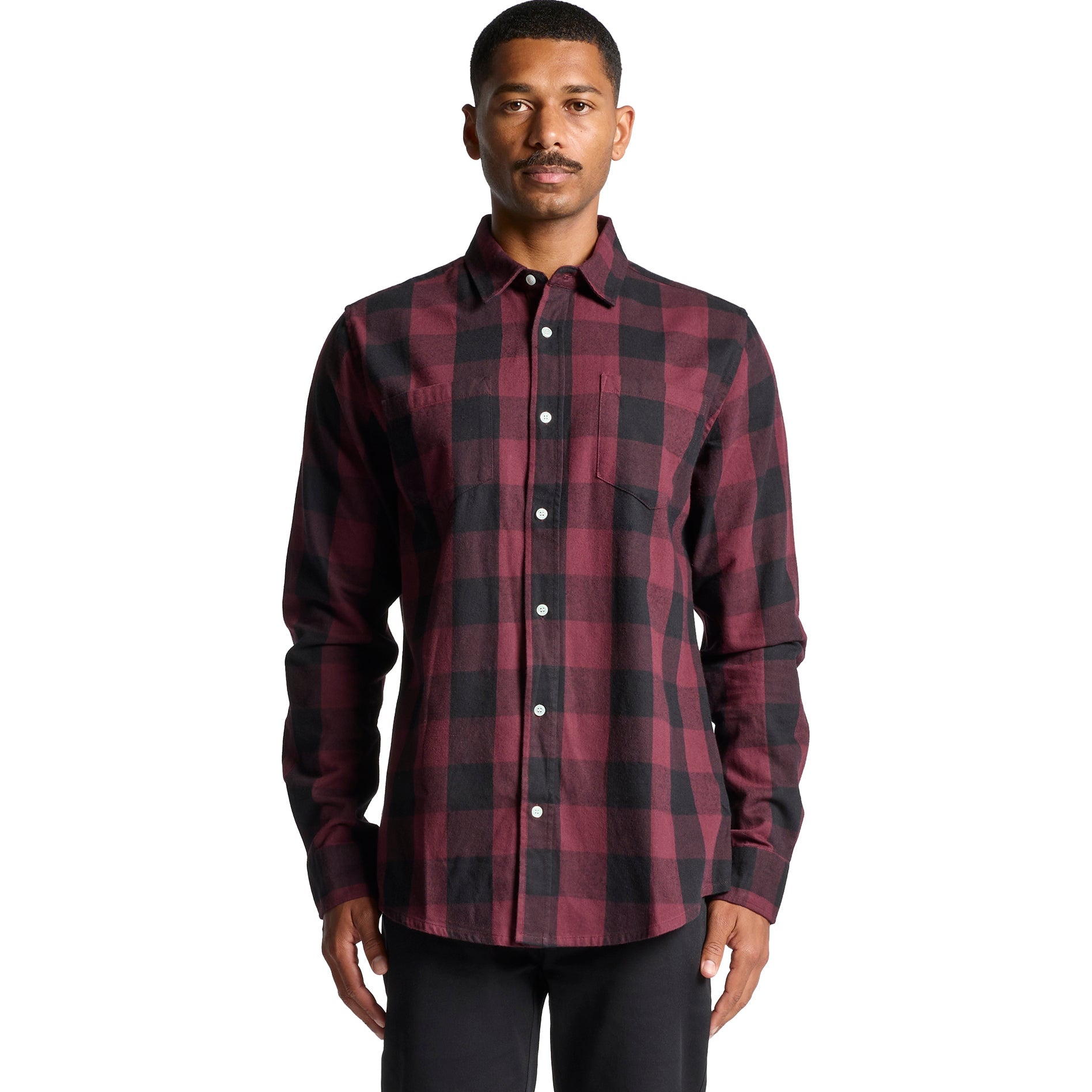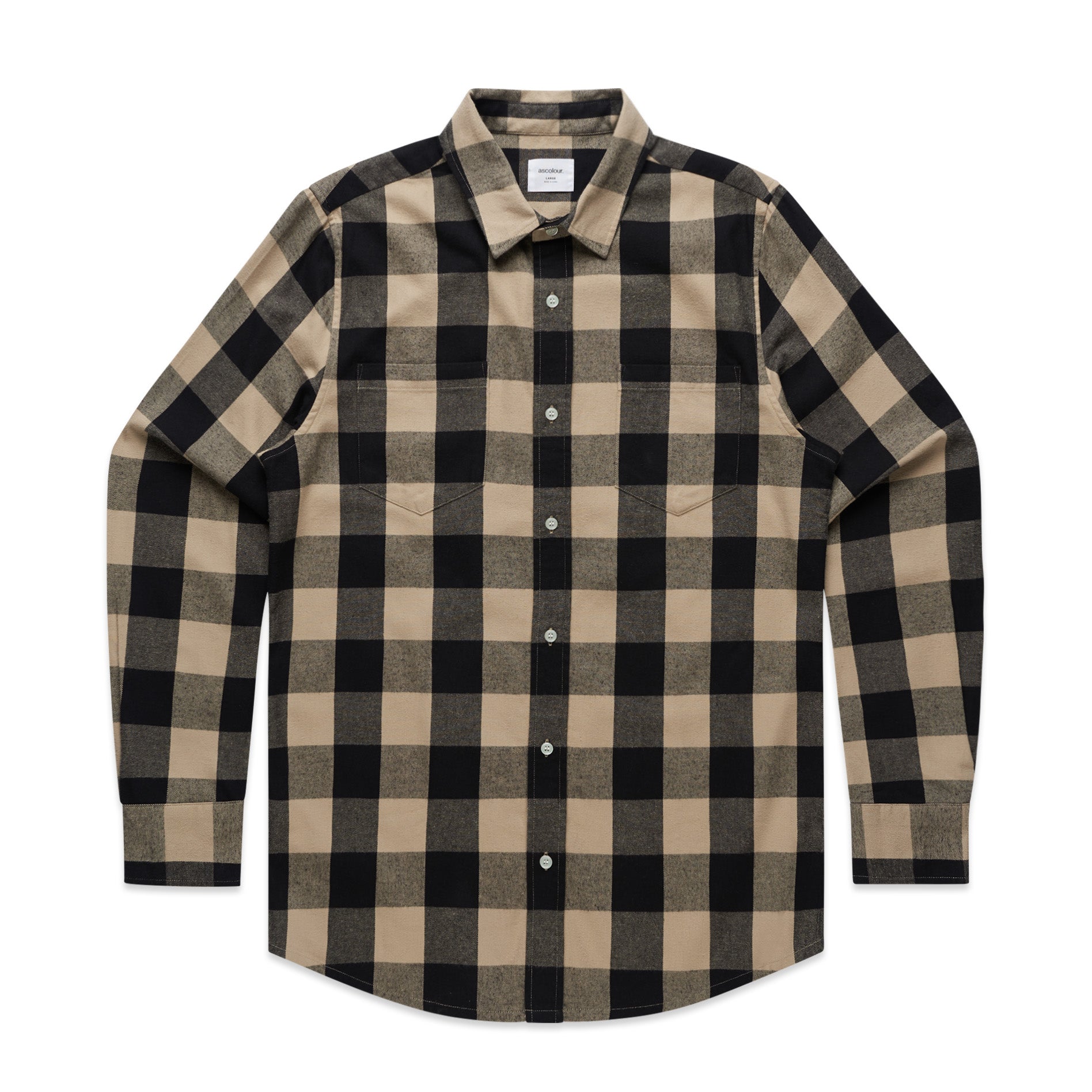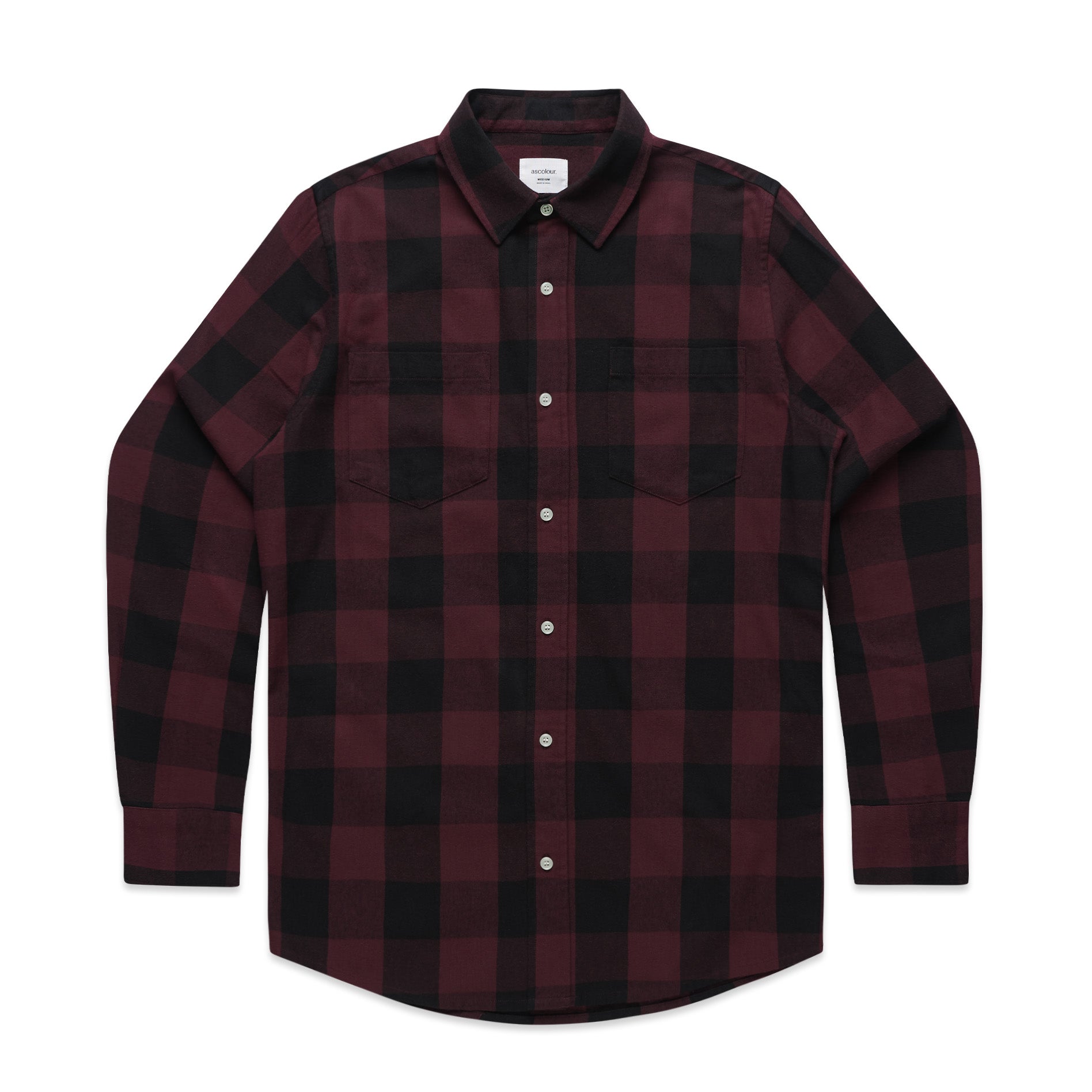 Check design, double chest pockets, Long sleeve button-up shirt, clear buttons, adjustable cuffs, back yoke, side seamed, preshrunk to minimise shrinkage