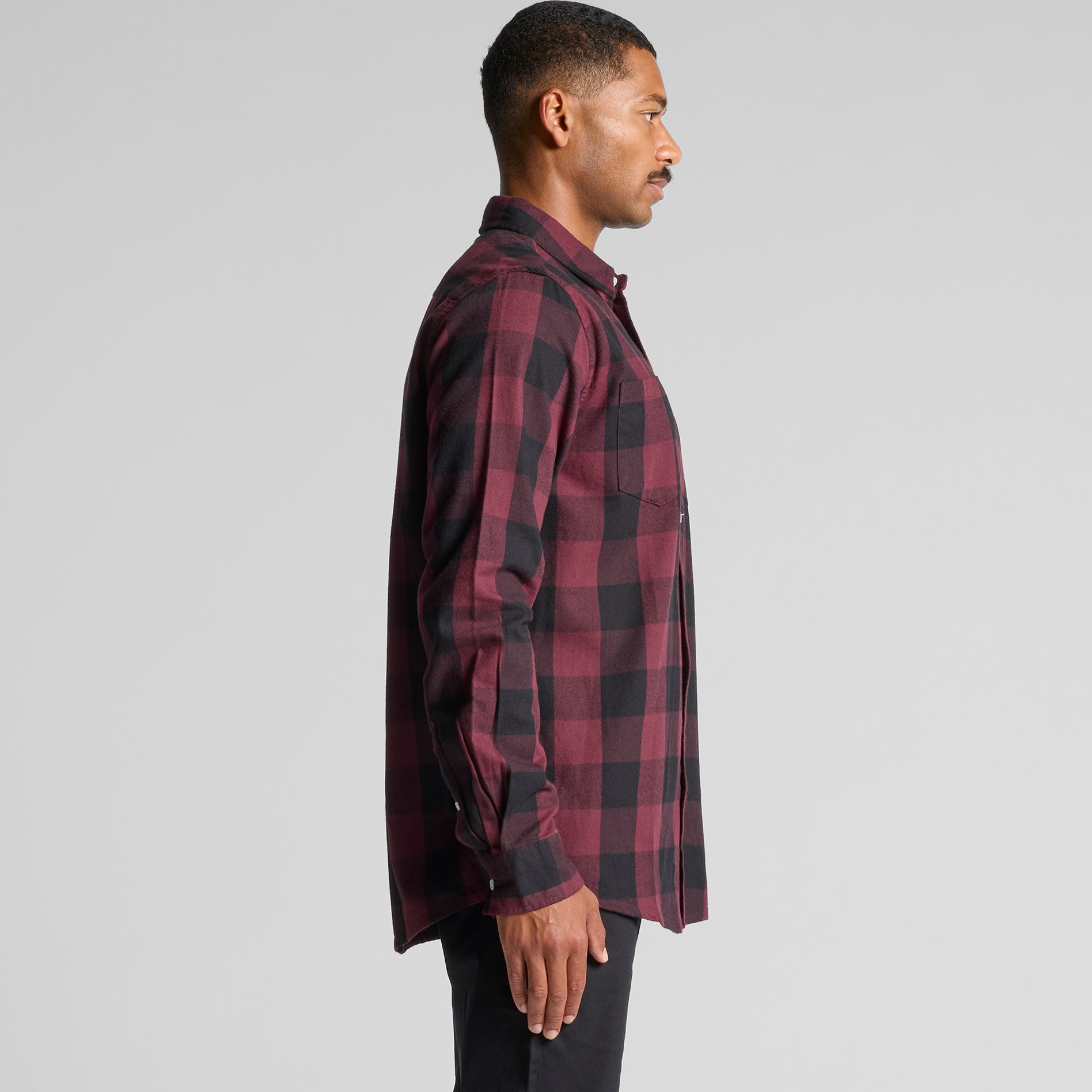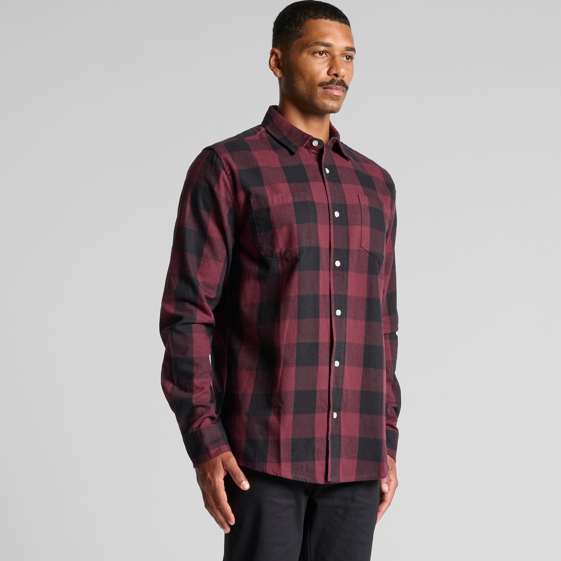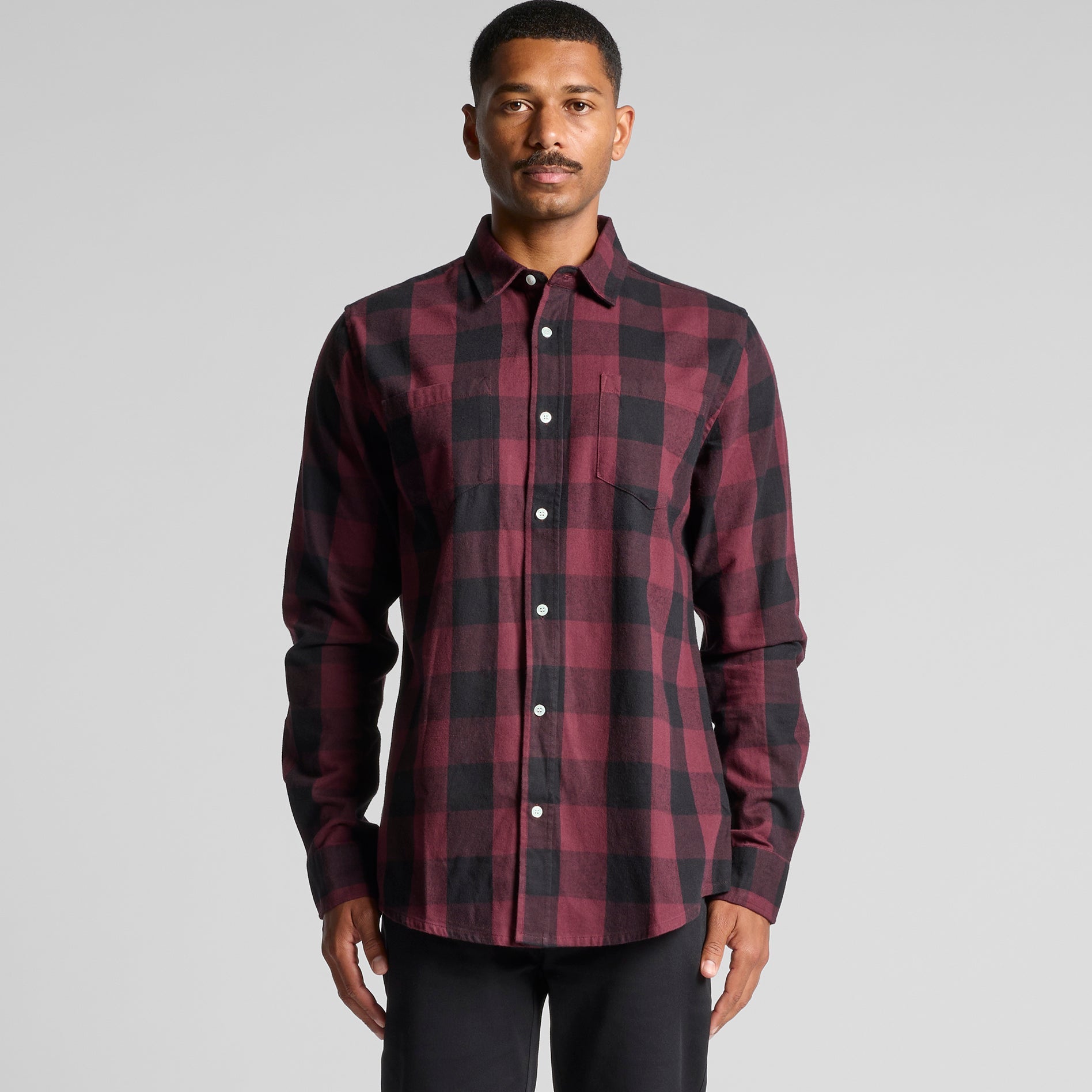 Check design, double chest pockets, Long sleeve button-up shirt, clear buttons, adjustable cuffs, back yoke, side seamed, preshrunk to minimise shrinkage