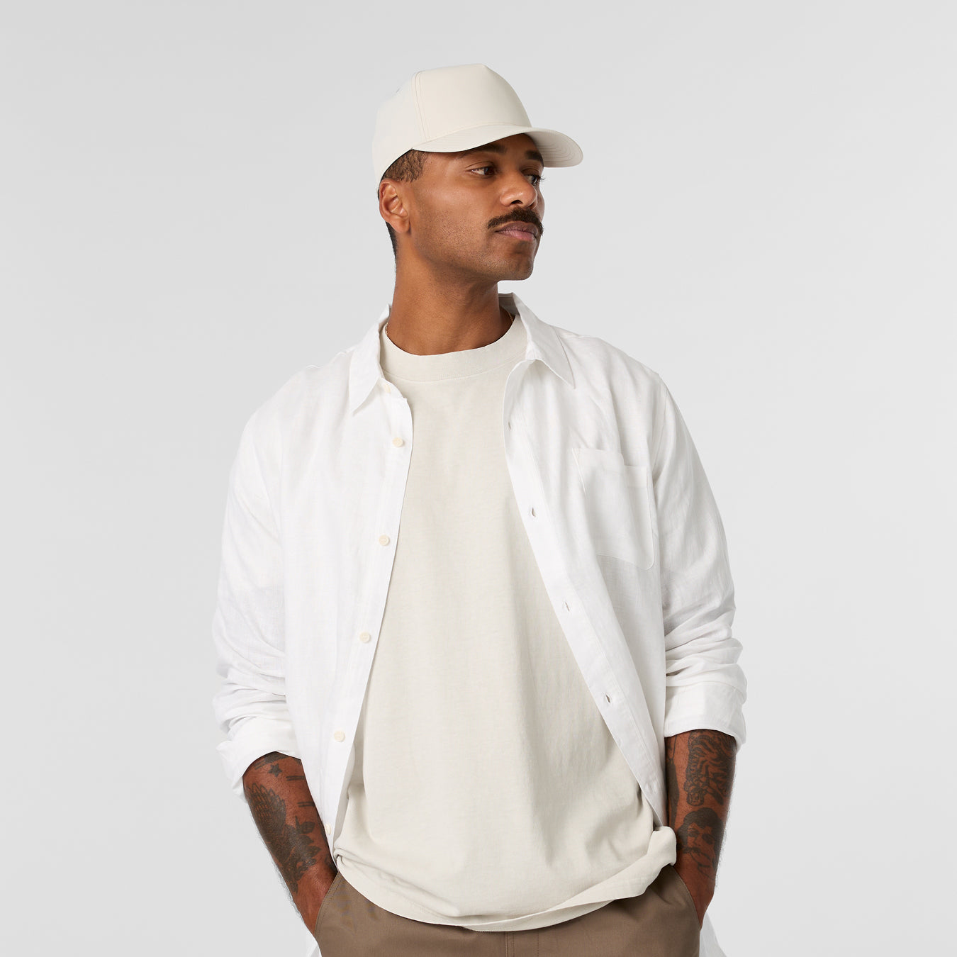 Chest pocket, tonal corozo nut buttons, back yoke, side seamed, preshrunk to minimise shrinkage