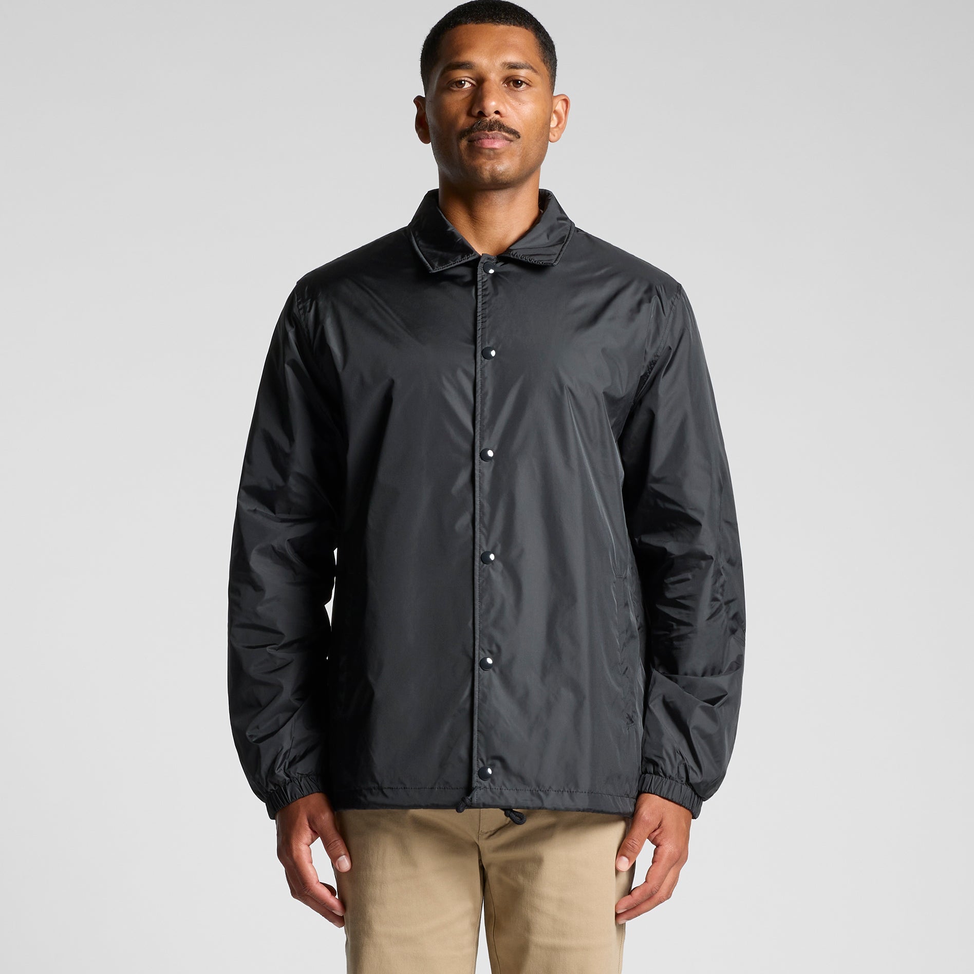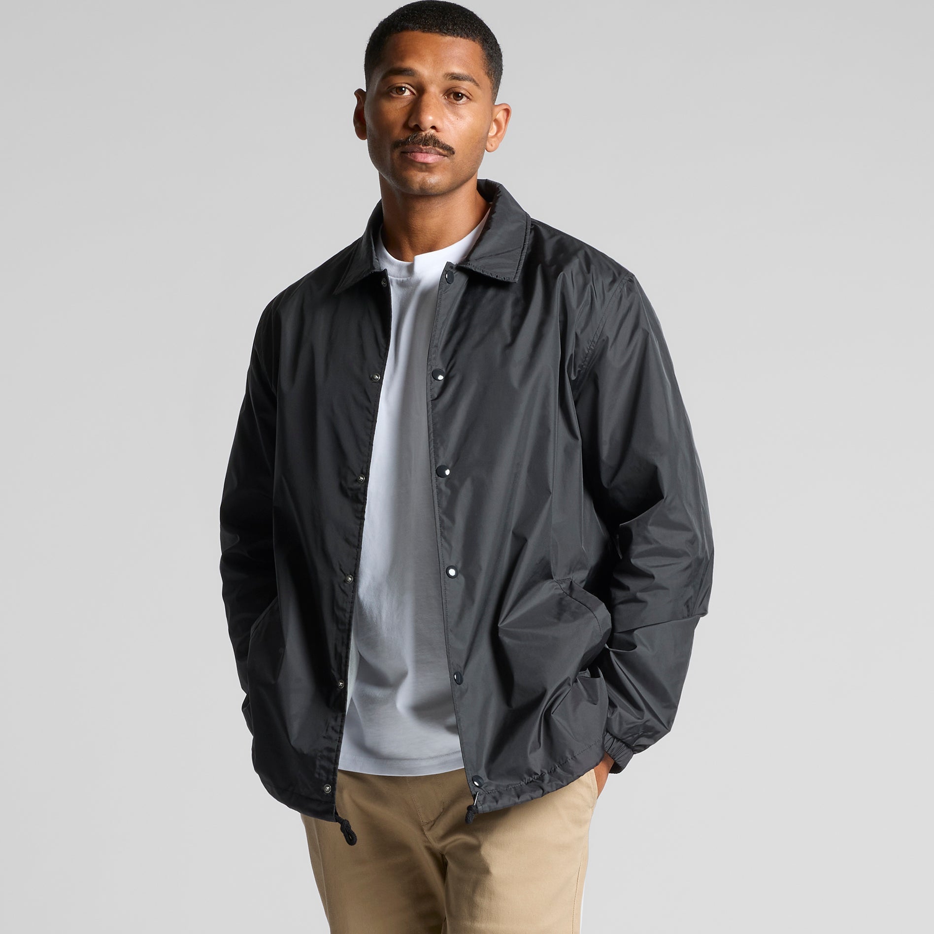 The AS Colour Coach Jacket, a regular fitting outerwear style crafted from light weight nylon with a polyester lining. Features include a collared design, snap dome closure, two side pockets, and elastic cuffs. Complete with a drawcord hem for a versatile, functional style.