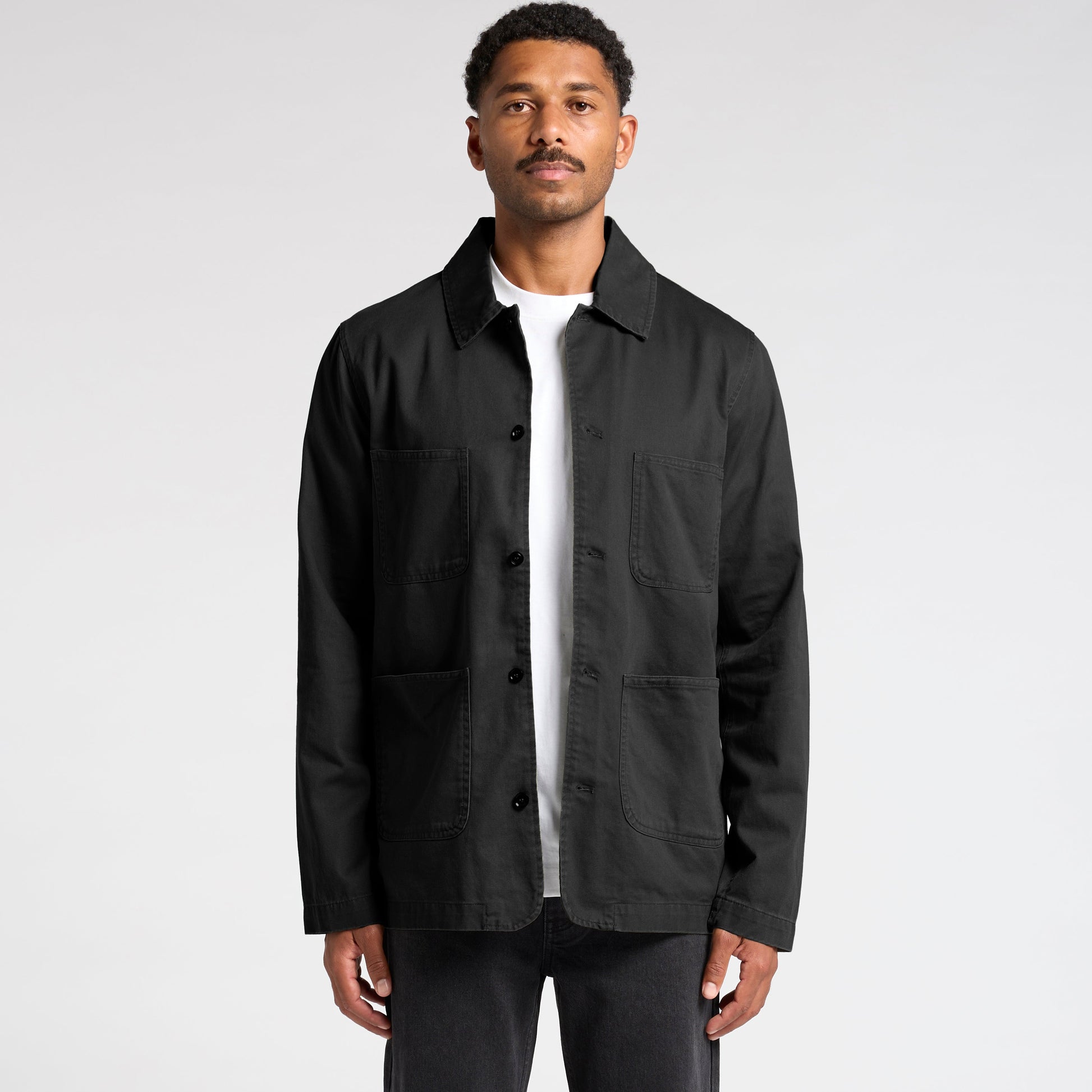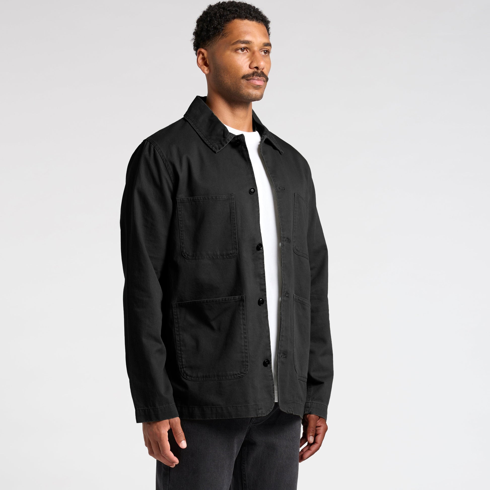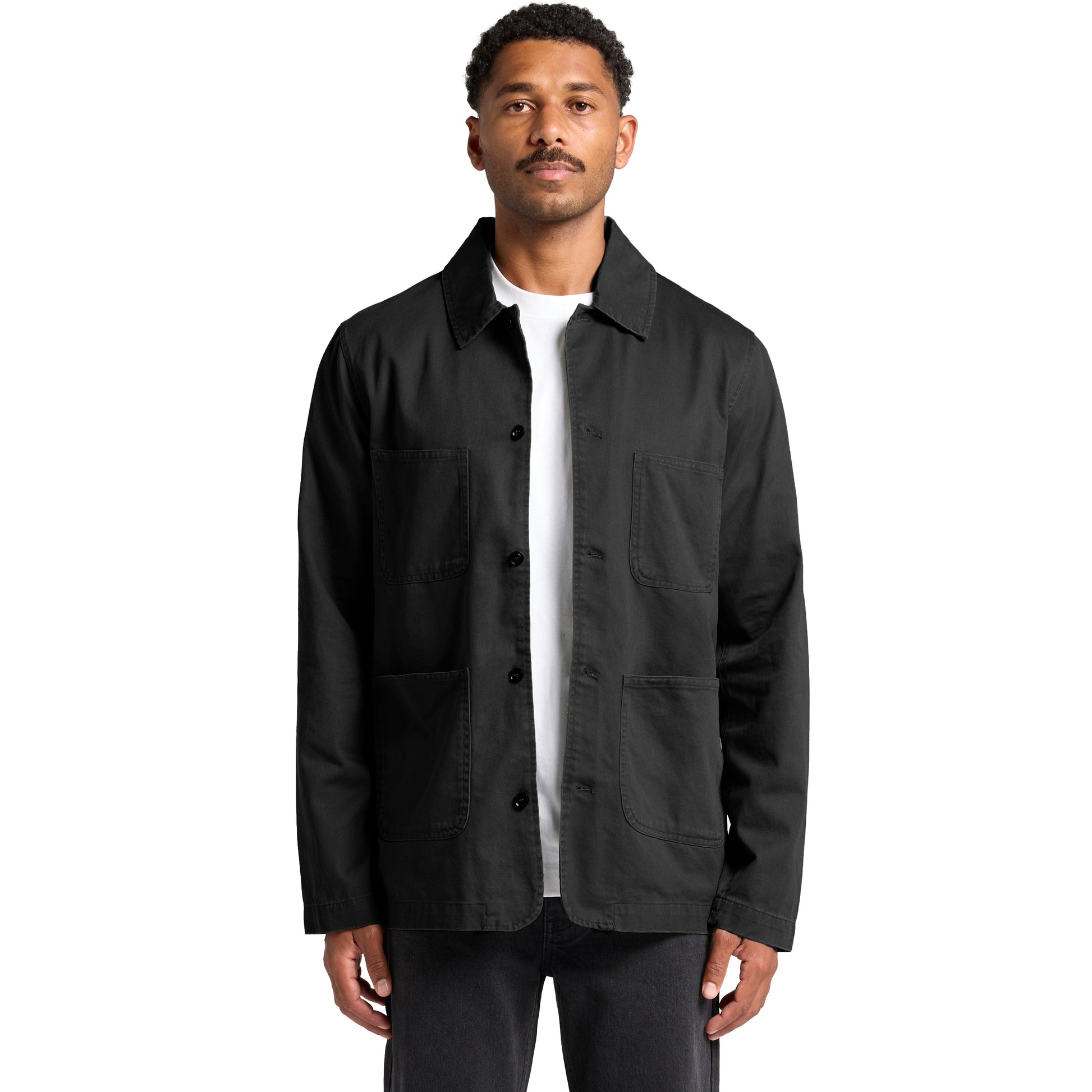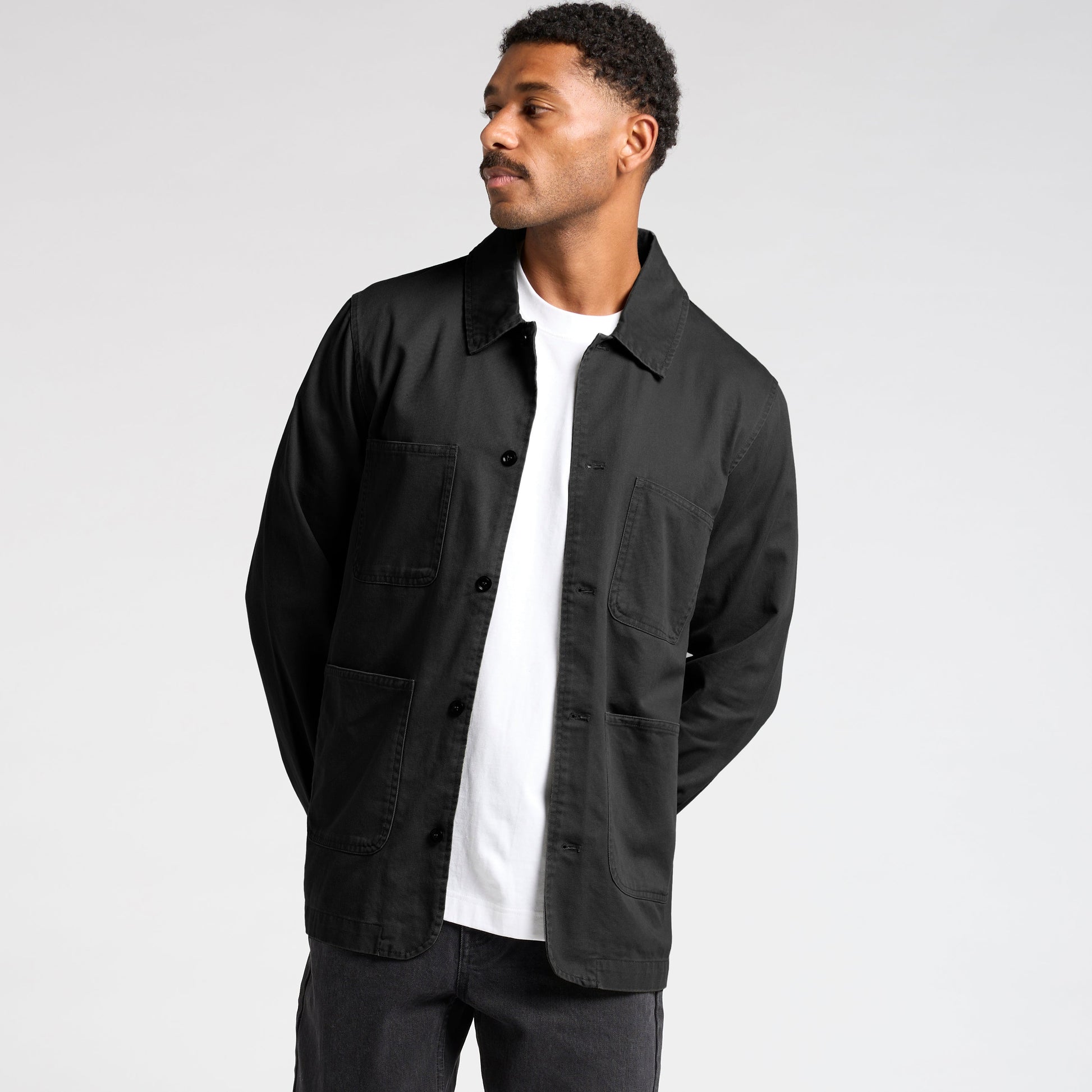 Introducing the AS Colour Chore Jacket, made from heavy weight cotton drill with a washed finish. This collared shirt jacket features four pockets and corozo buttons for closure, offering durability and timeless style.