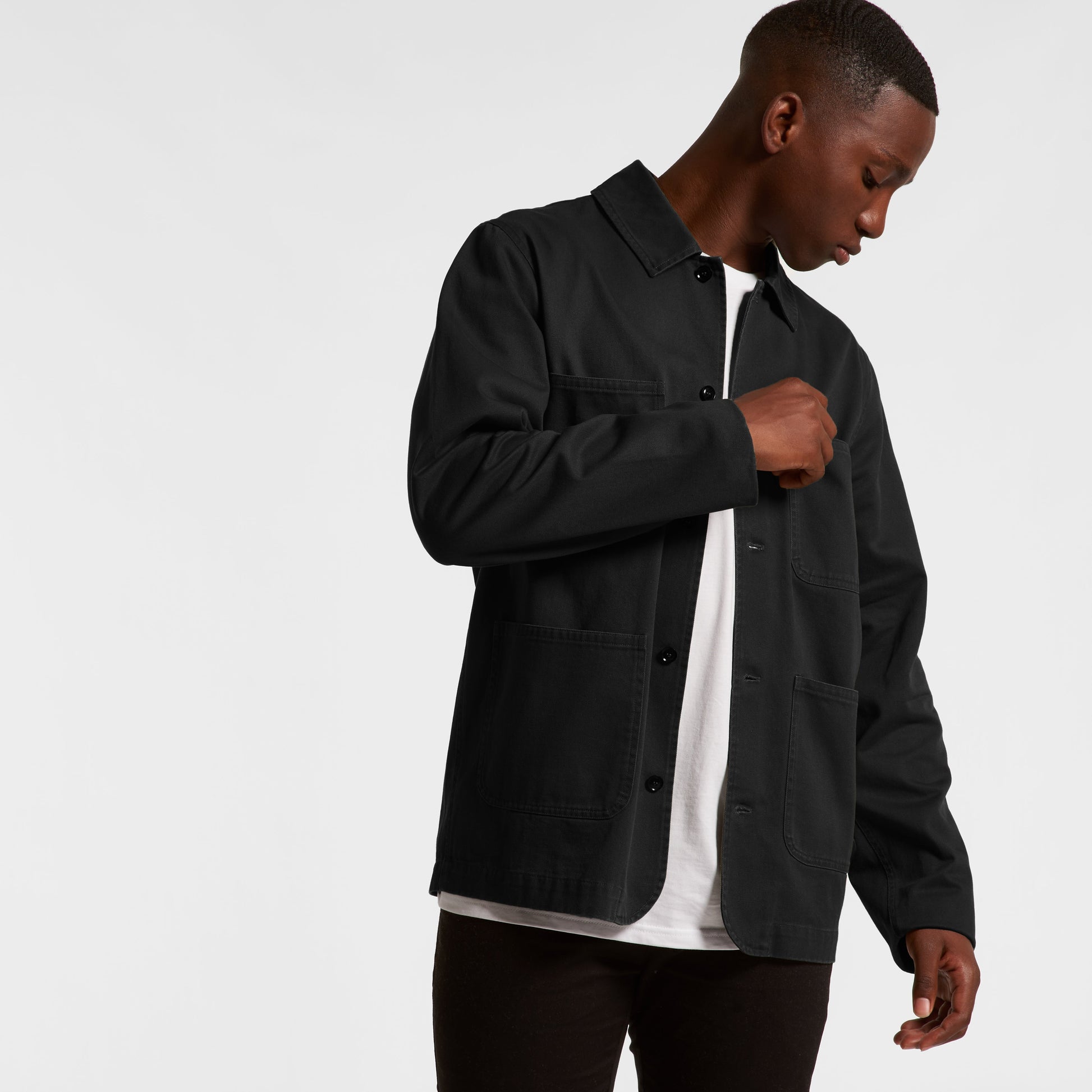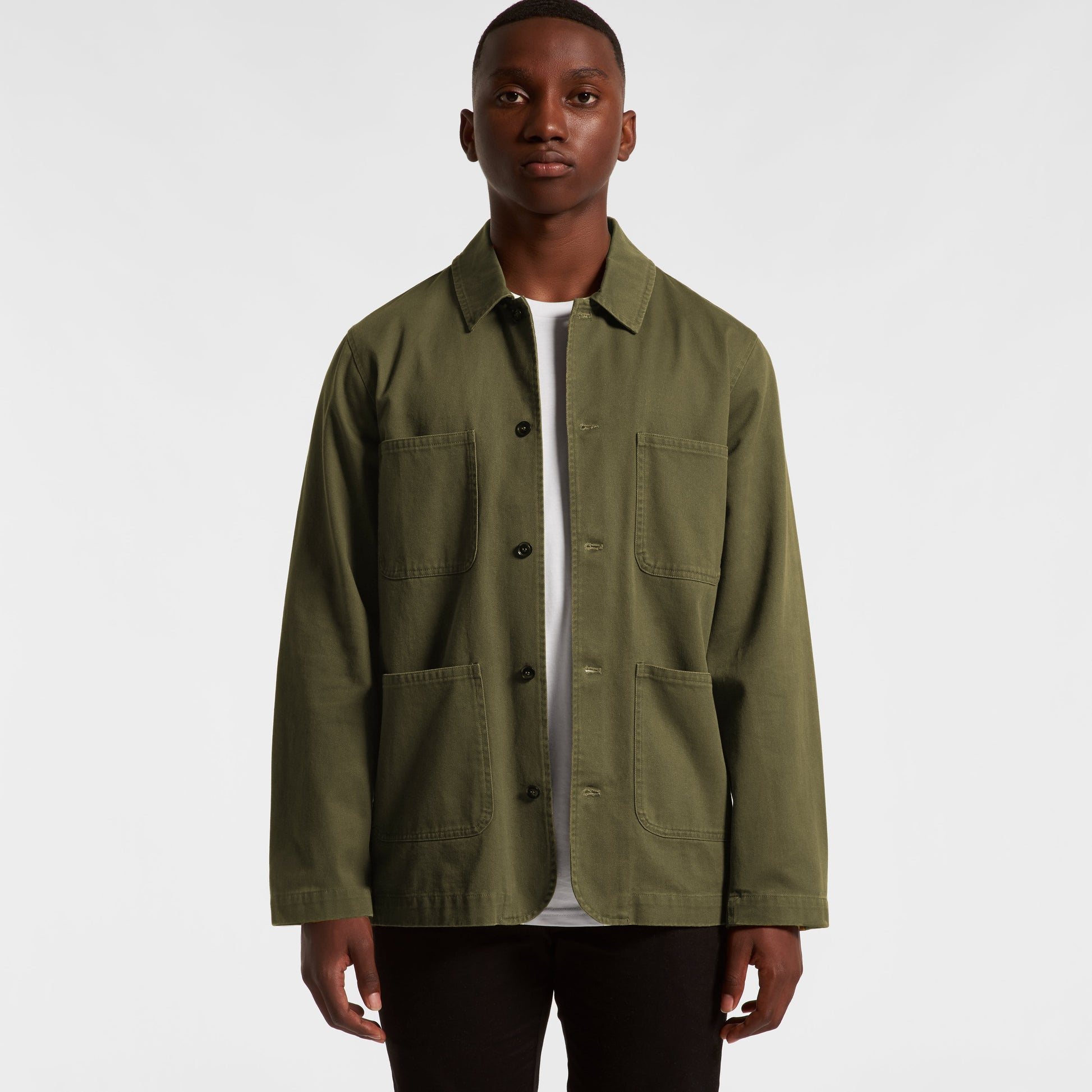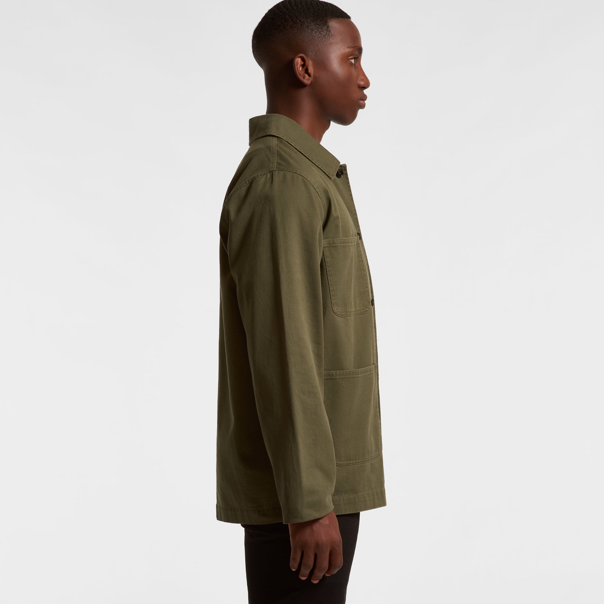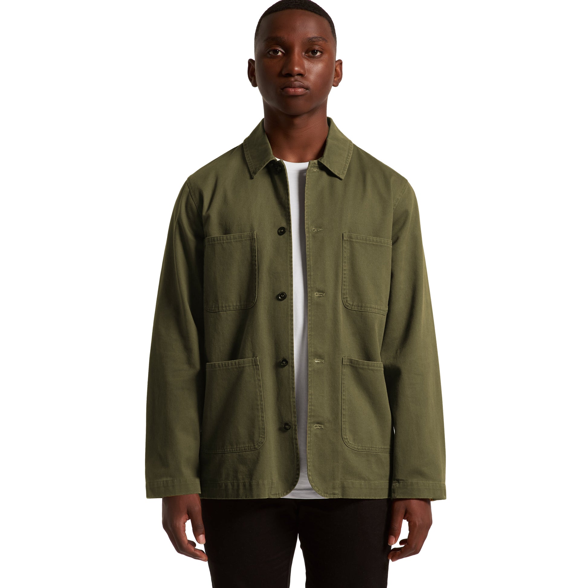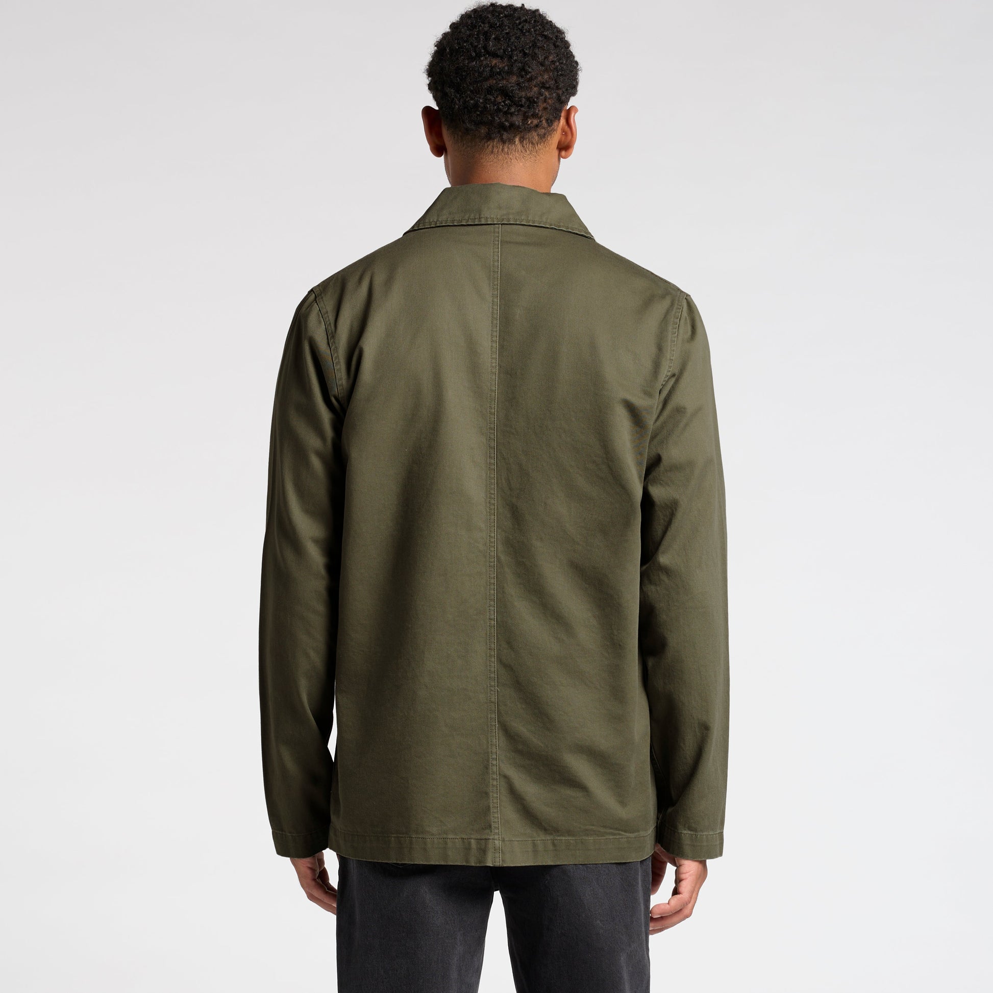 Introducing the AS Colour Chore Jacket, made from heavy weight cotton drill with a washed finish. This collared shirt jacket features four pockets and corozo buttons for closure, offering durability and timeless style.