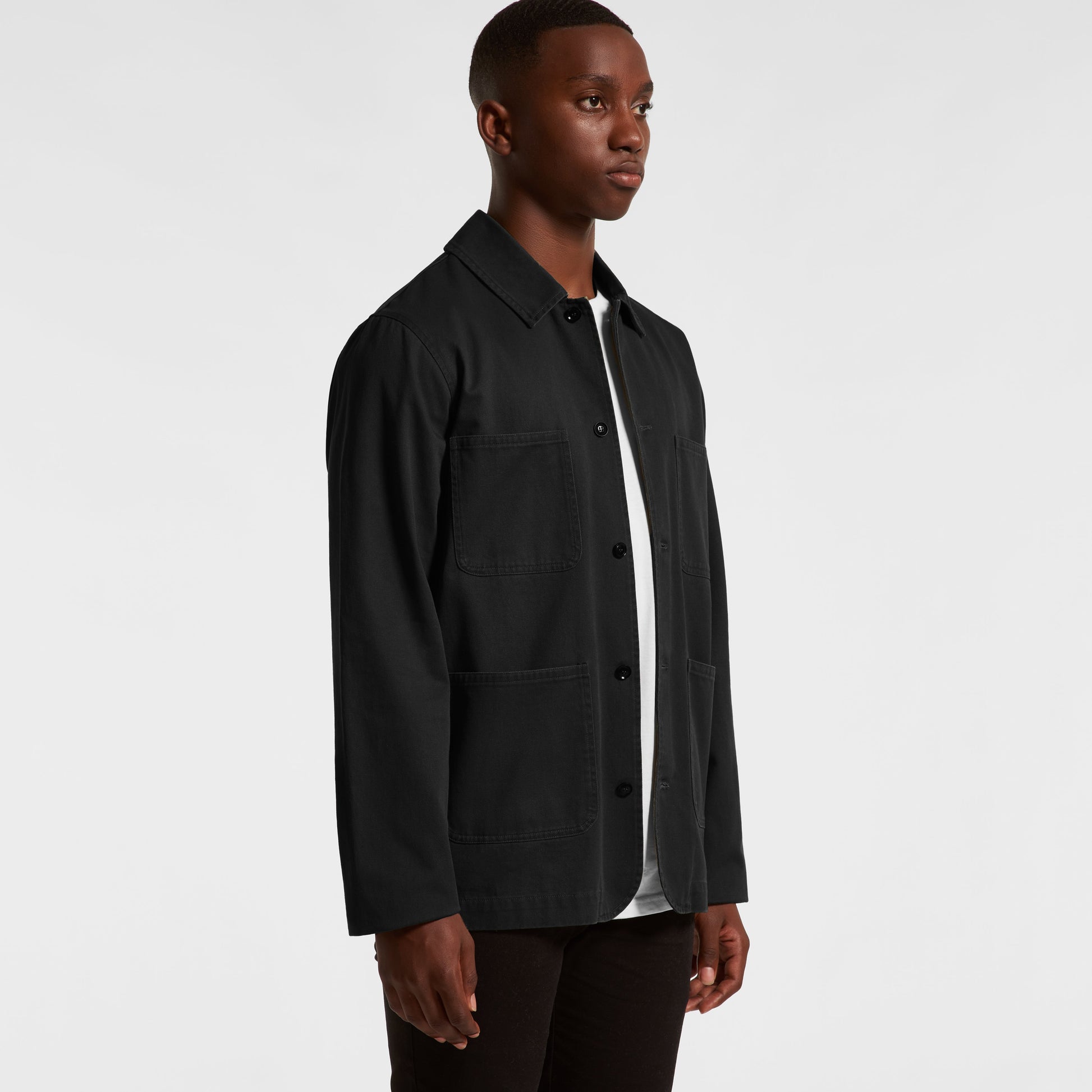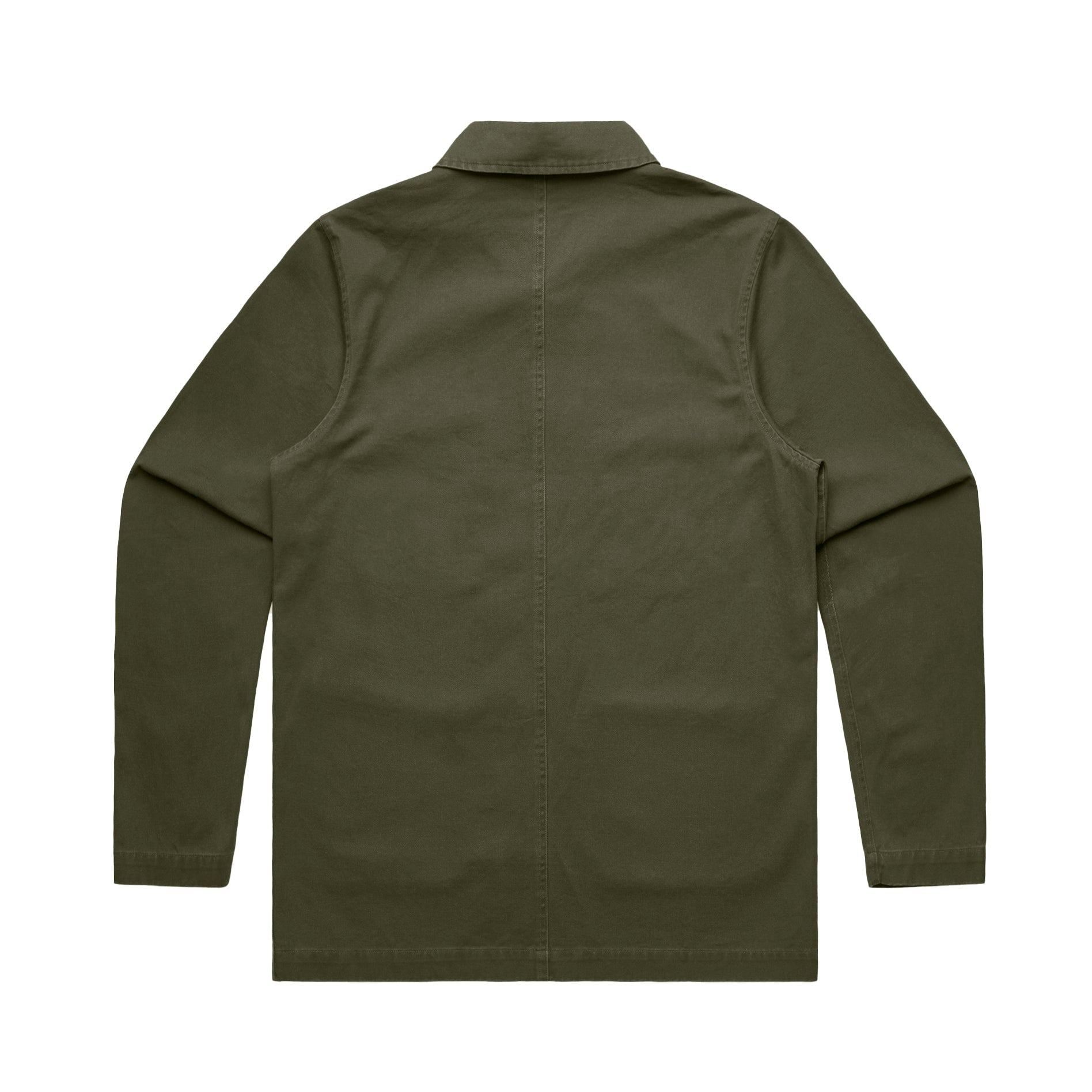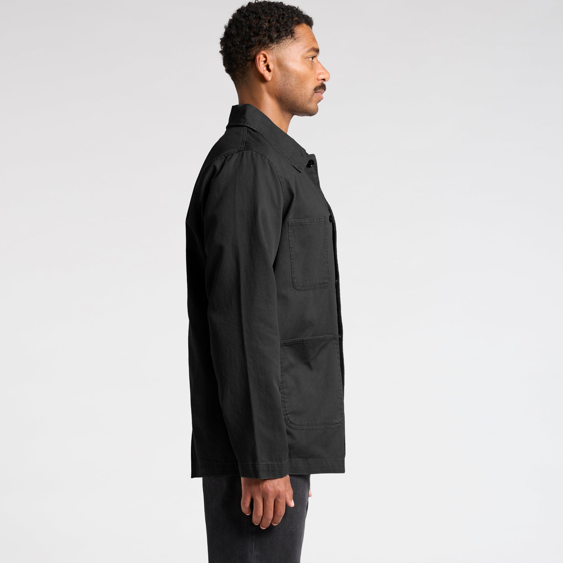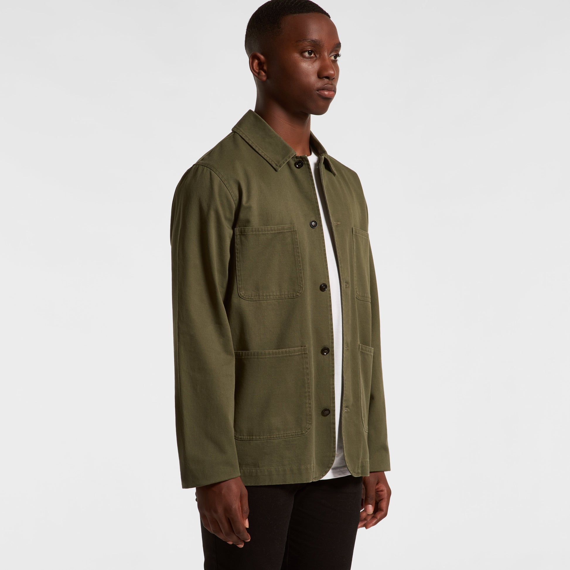 Introducing the AS Colour Chore Jacket, made from heavy weight cotton drill with a washed finish. This collared shirt jacket features four pockets and corozo buttons for closure, offering durability and timeless style.