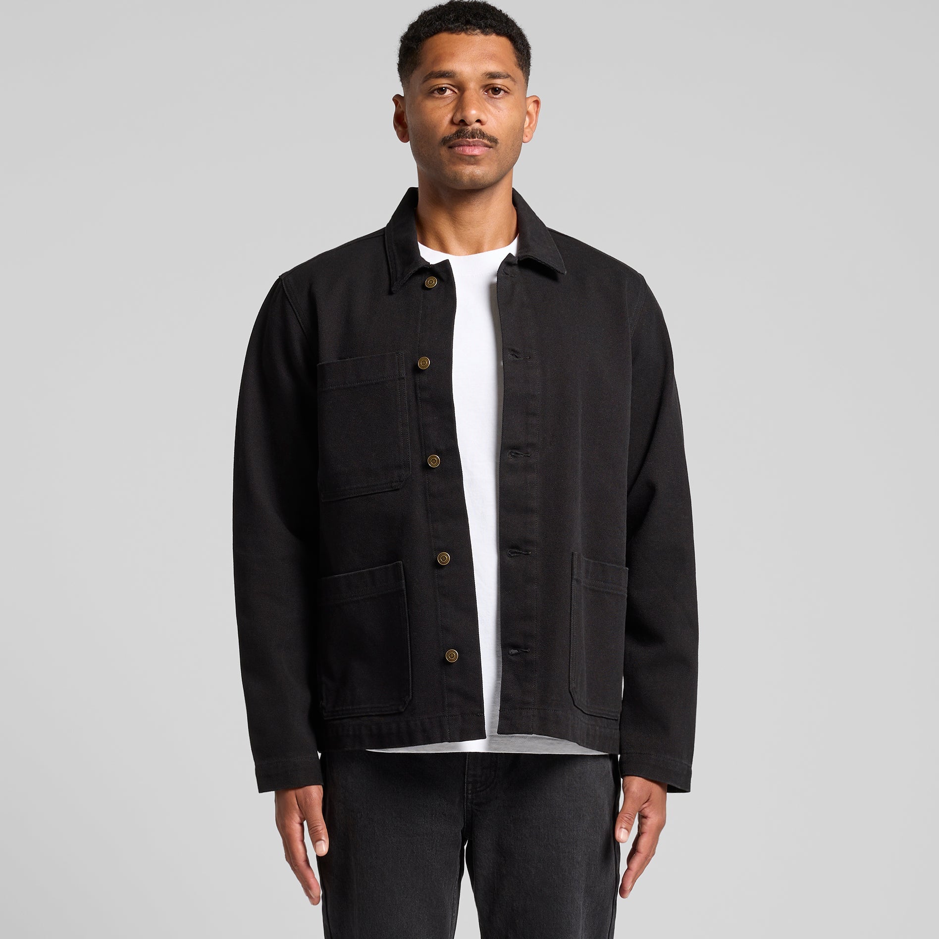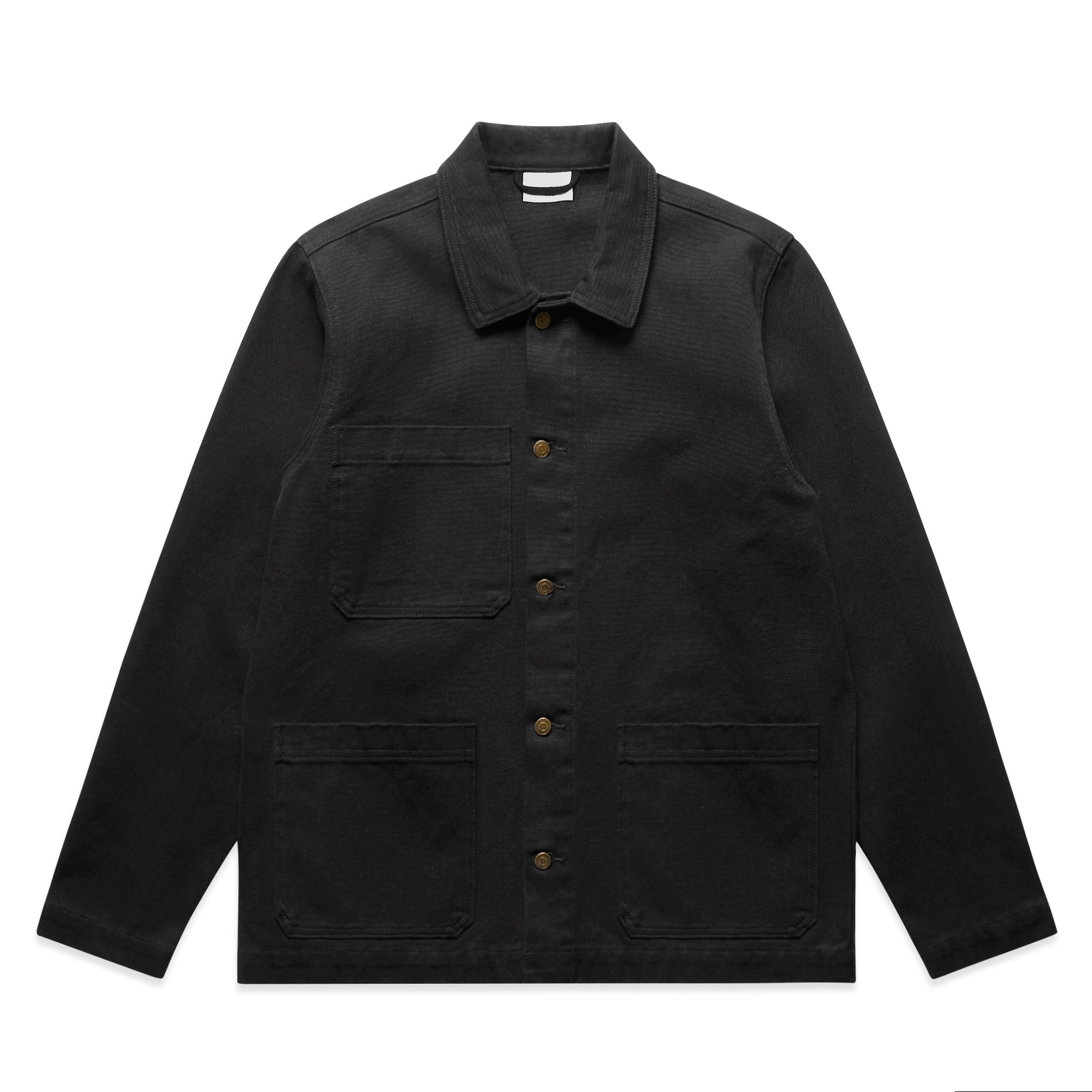 Three pocket, collared shirt jacket, unlined, ykk shank buttons to close.