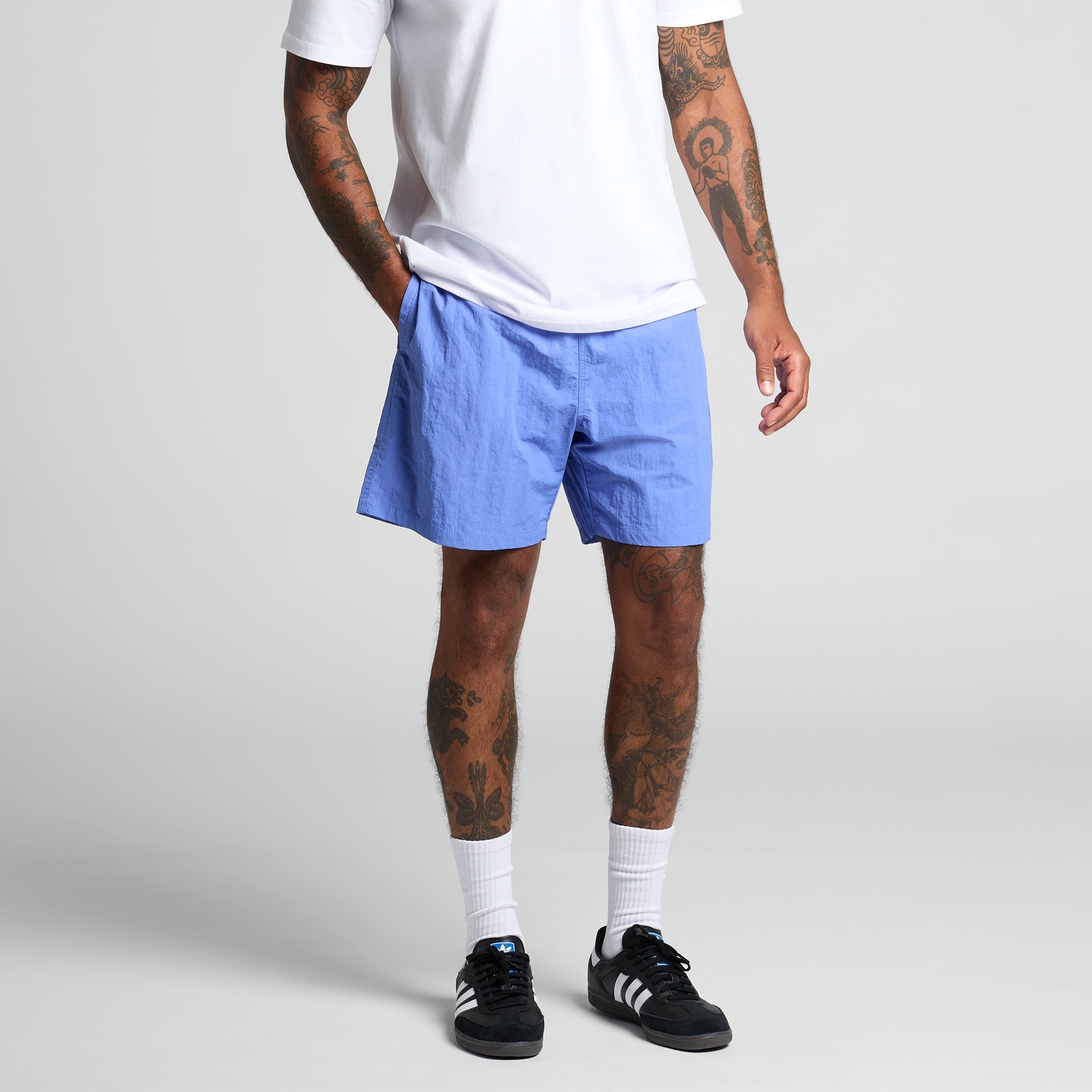 Casual shorts, 2 side and 1 back mesh lined pockets, shorter length, elastic waistband, tonal internal drawcord, quick-dry fabric