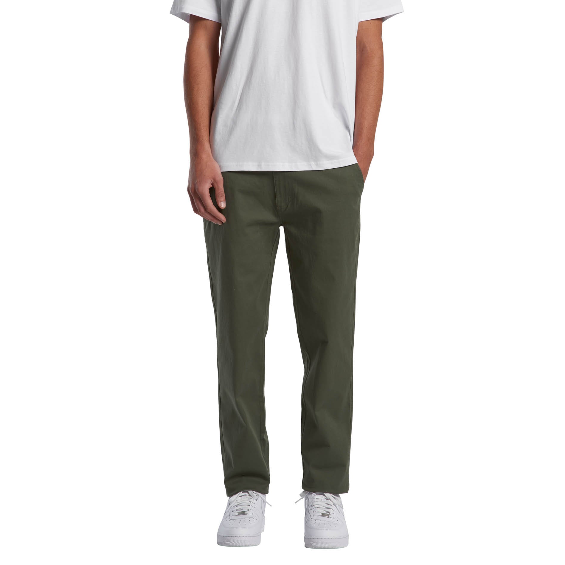 Chino pants, 2 side pockets, jet pockets at back, belt loops on waist, button closure, anti-brass metal YKK zip fly, preshrunk to minimise shrinkage