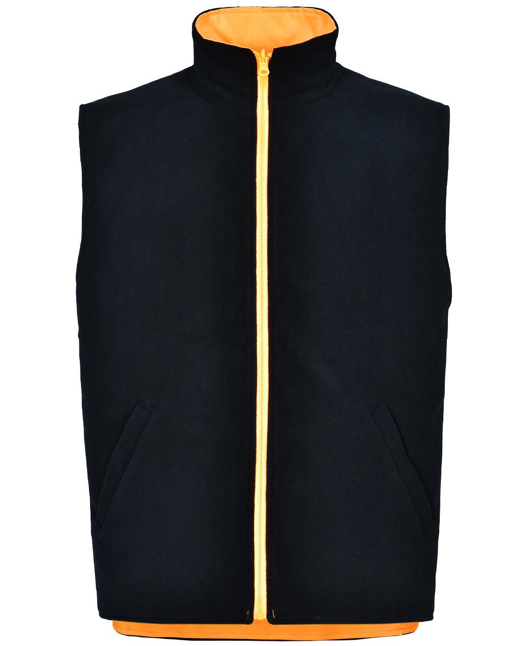 Double sided reversible vest, waterproof oxford face shell with polar fleece on reverse side
