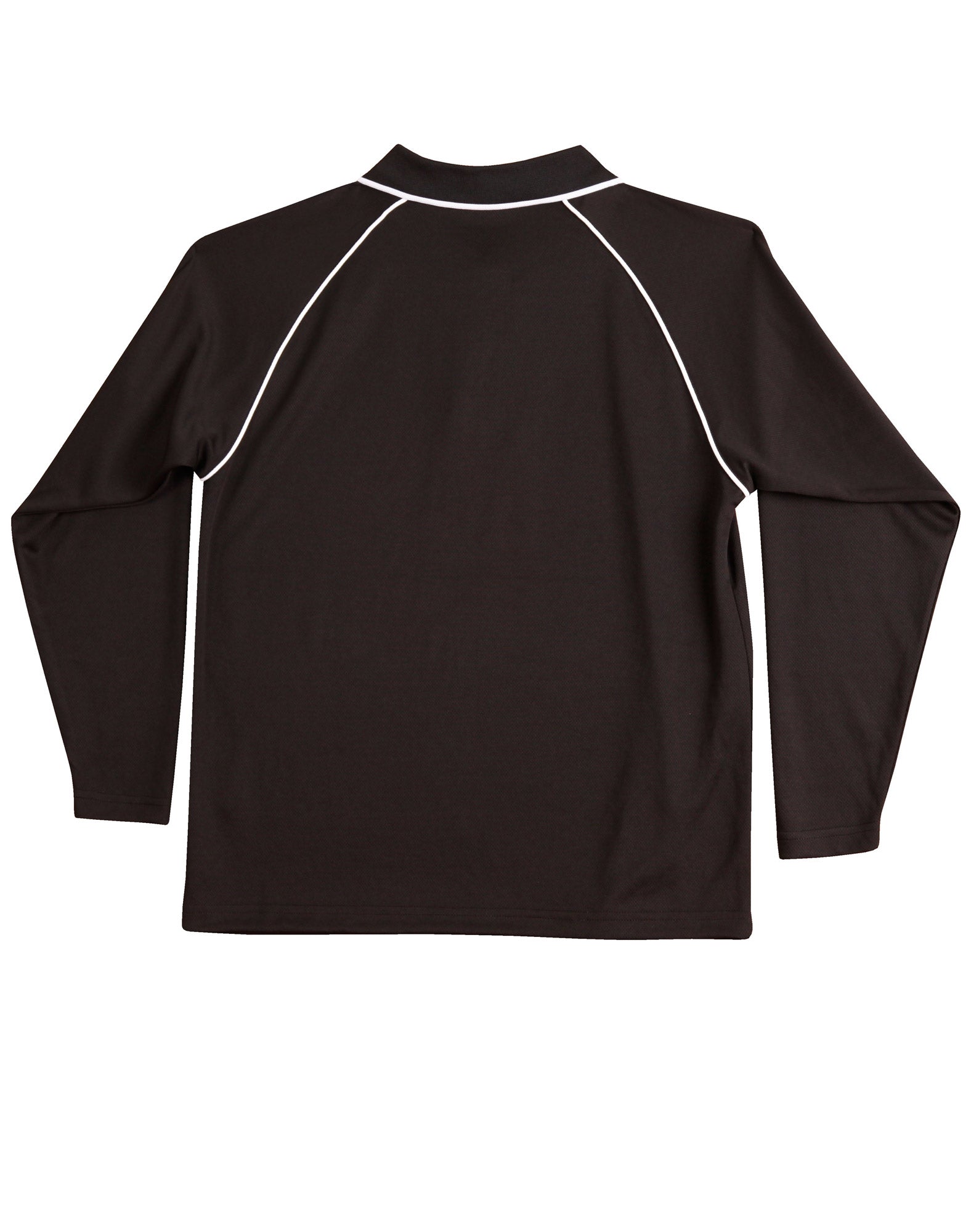 Description: Breathable diamond knitted fabric. Long raglan sleeves. Contrast piping on raglan sleeve seams and on collar.